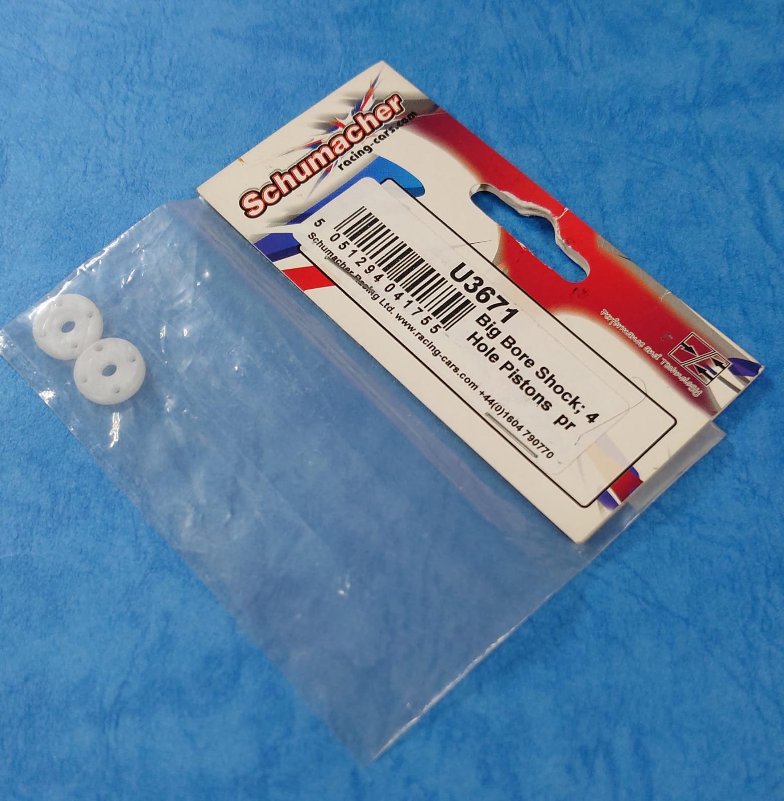 Name: Schumacher U3671 - Big Bore Shock; 4 Hole Pistons pr (Mi5) *DISCONTINUED*