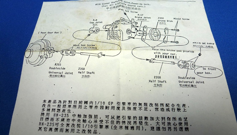 Name: Hong Nor 235 - Center Shaft & Cup Joint Power-UP Unit (for all 1-10 Engine Car) *DISCONTINUED*