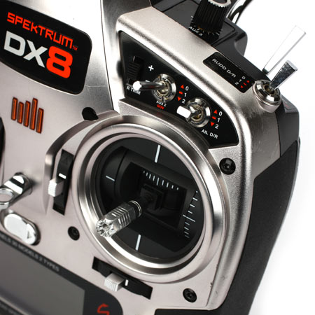 The DX8's weight distribution and ergonomics have been optimized to fit the way you fly. The result is a sense of balance and comfort that perfectly complements the speed and precision of DSMX® technology. Some of the more notable features include: