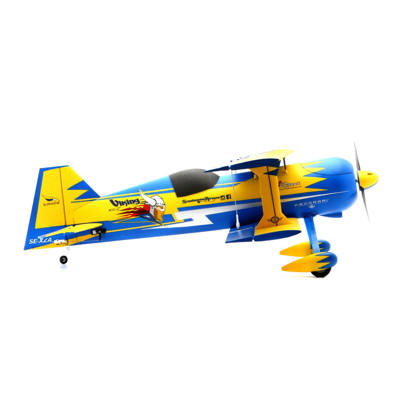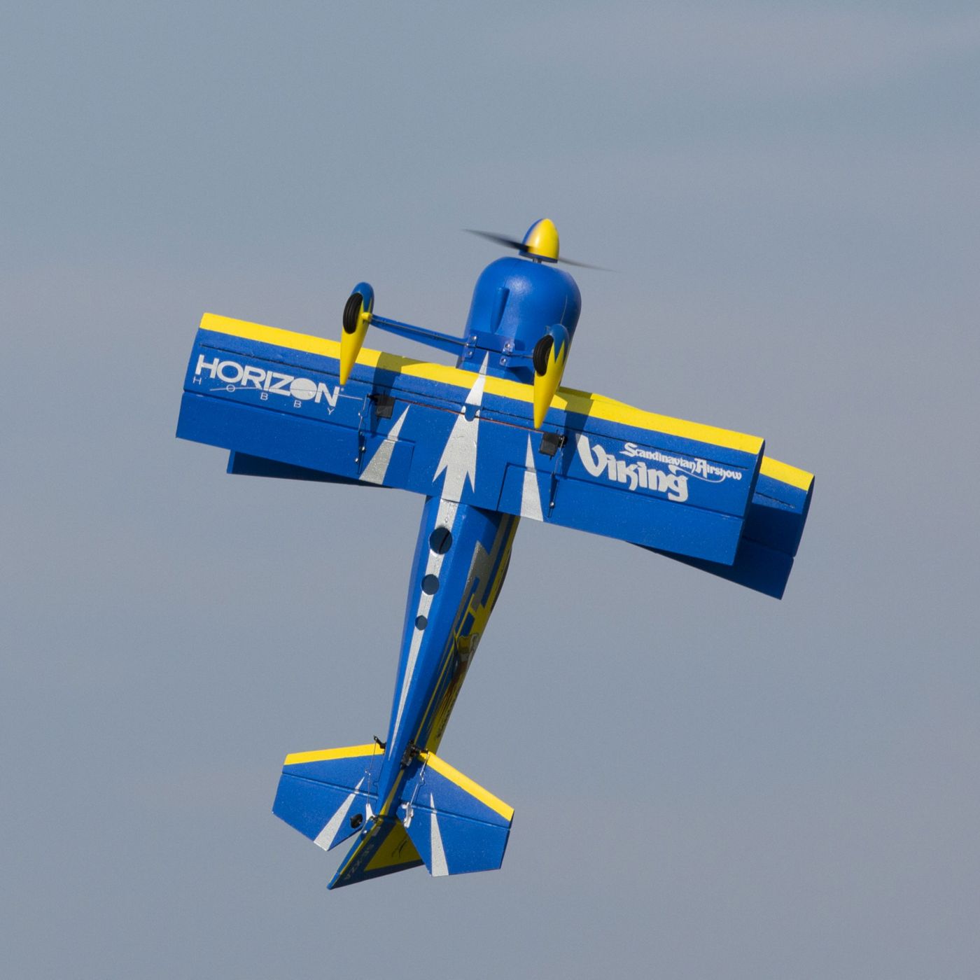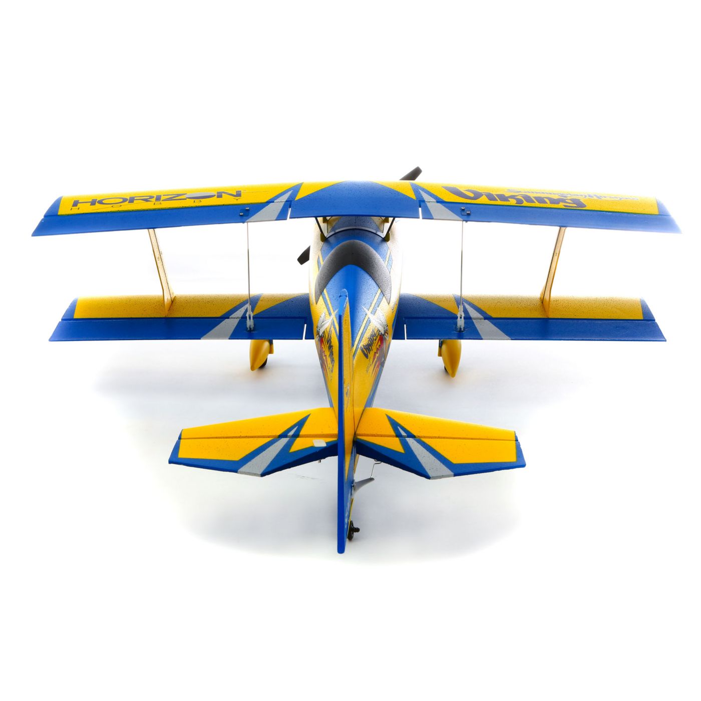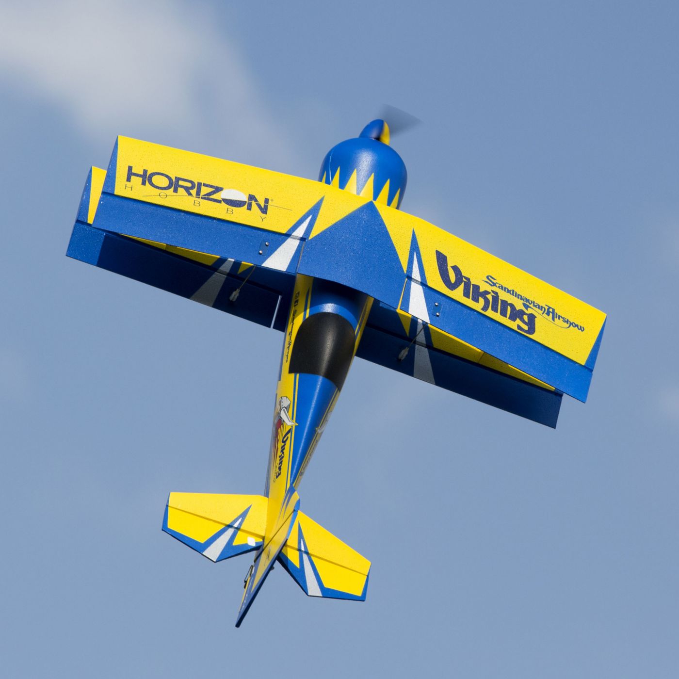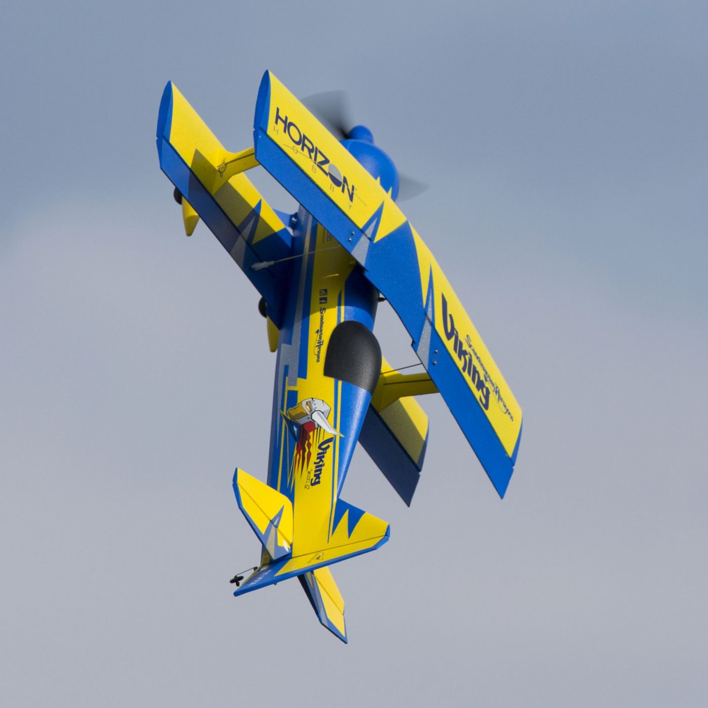 The E-flite® Viking Model 12® 280 model is an aggressive 3D recreation of the sensational full-scale aerobatic biplane. Up front is a brushless 280-size outrunner motor that’s incredibly powerful on a 3S Li-Po battery. Lightweight molded foam construction helps deliver the best power-to-weight ratio and stunning finish of the Viking trim scheme. But it’s the specially tuned Spektrum™ AR6335 6-channel receiver with AS3X® technology that delivers a 3D park flyer without equal. That’s because the AS3X system has been specially tuned for this biplane to fight the effects of wind and turbulence so all you experience is a locked-in control feel comparable to flying an expertly tuned aerobat that’s much larger.