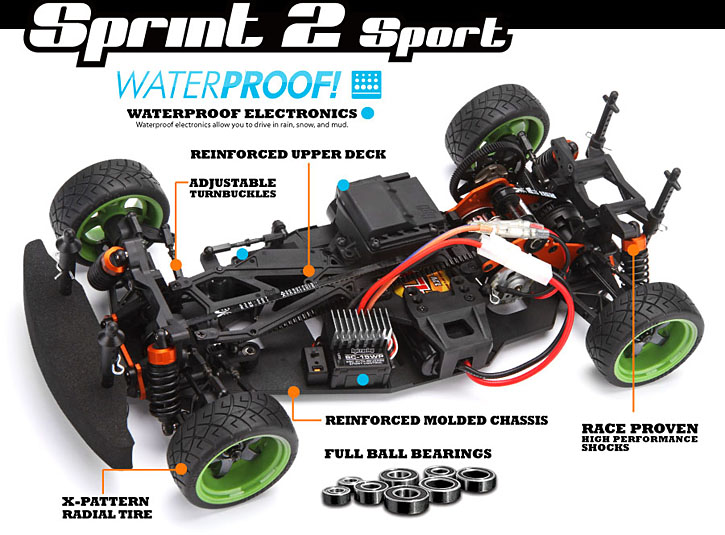 • Waterproof SP-15WP electronic speed control with LiPo safety cut-off