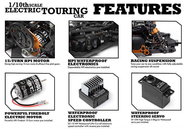 • Optional low profile front shock tower is included in the kit which allows the use of the full range of HPI 190mm to 210mm wide bodies