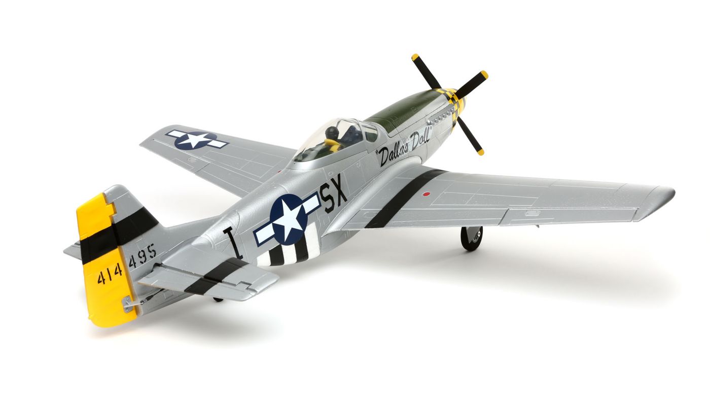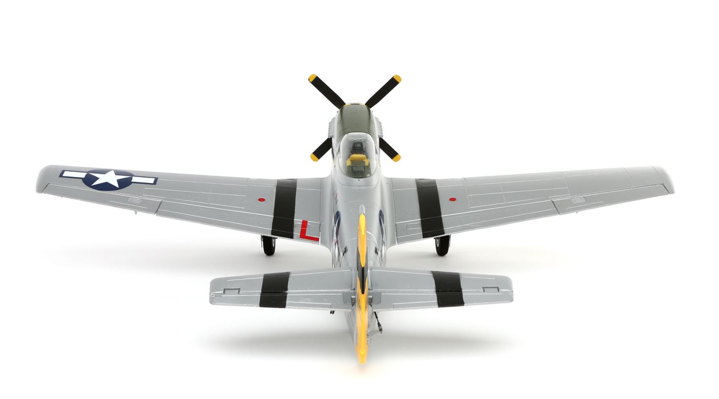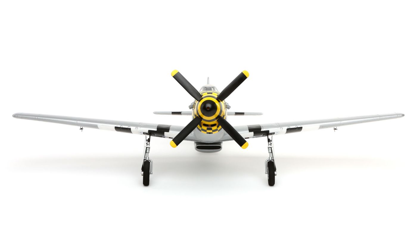 The North American P-51D Mustang used during WWII was a game changer. Its abilities gave pilots a formidable advantage and the inspiration to go beyond mission objectives in addition to fulfilling their "Ace" potential. The new E-flite® P-51D Mustang is an electric-powered model that brings the ultimate warbird experience to your local park. Electric retracts and functional flaps are already installed so you can experience a well-equipped warbird right away. Every angle of the airframe is saturated with extensive detail that’s built upon the most accurate outline possible. Lightweight Z-Foam™ construction is combined with composite reinforcement so that flight performance is as forgiving as it is thrilling. Besides its authentic color scheme, the bounty of features included on this Mustang allow this thoroughbred outrun all others. That’s because every feature has been hand-selected by Horizon Hobby experts whose ultimate priority is to deliver a great flying warbird.