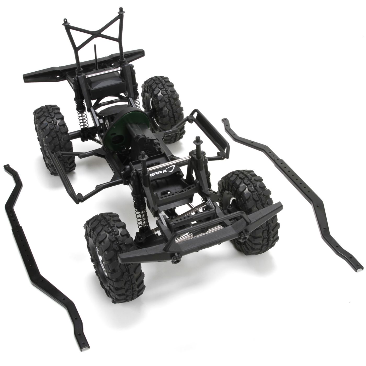 The front and rear bumpers feature molded tow hooks. An opening on the front bumper leaves plenty of room for a winch cable. If you want to try different 1/10-scale bodies later on, the side bars and bumpers can be moved to accommodate most of them.