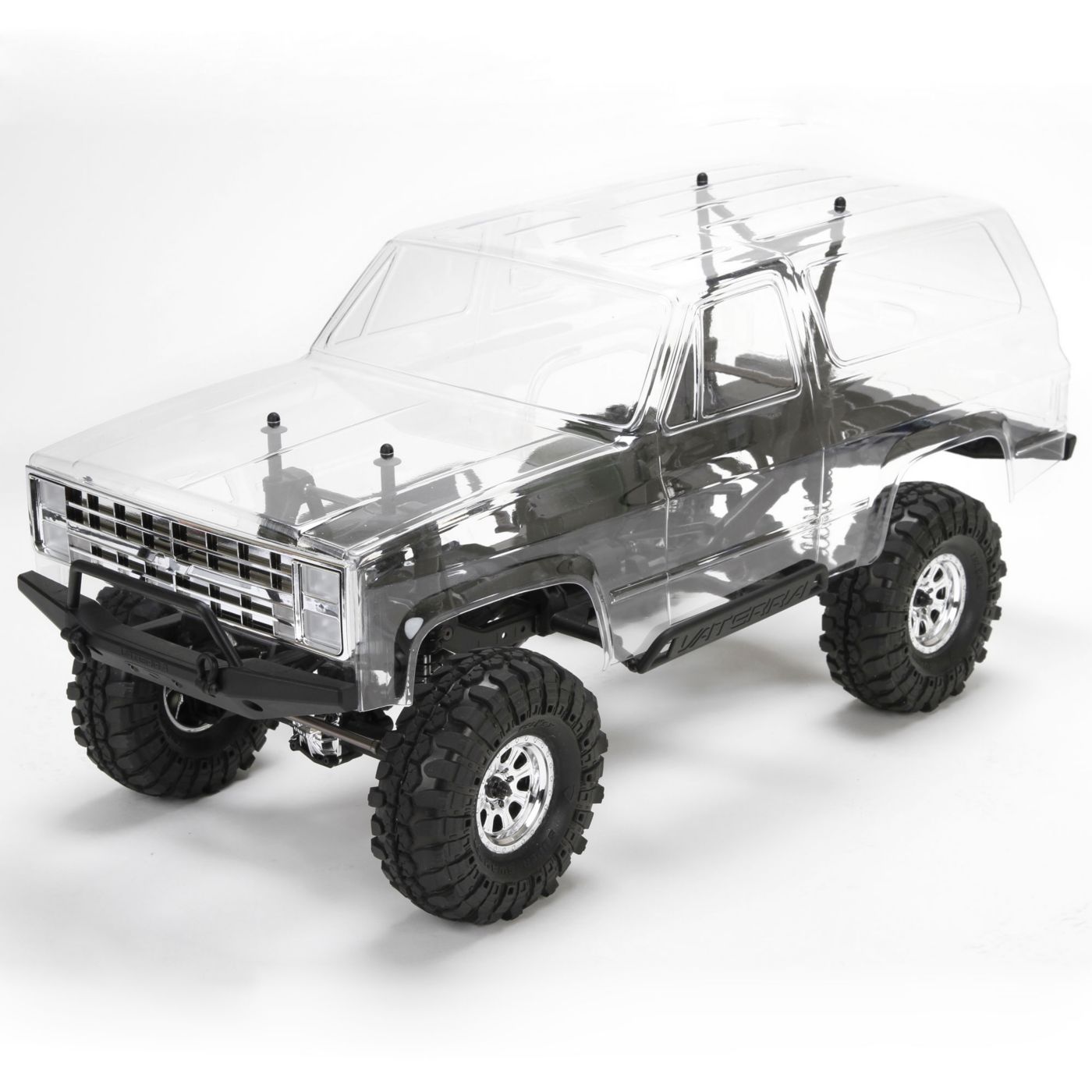 The clear, polycarbonate body is modeled after one of the most popular K-5 Blazers ever built. Scale touches include an injection-molded grille with headlight details and authentic Chevrolet badging. A set of detail stickers is also included.