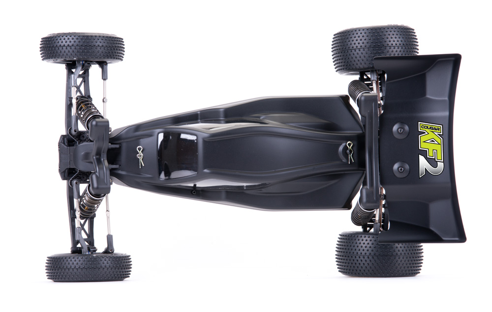 The Cougar KF2 is equipped with industry standard 12mm hex front and rear wheels and Schumacher’s legendary Big Bore Shocks to soak up the bumps.