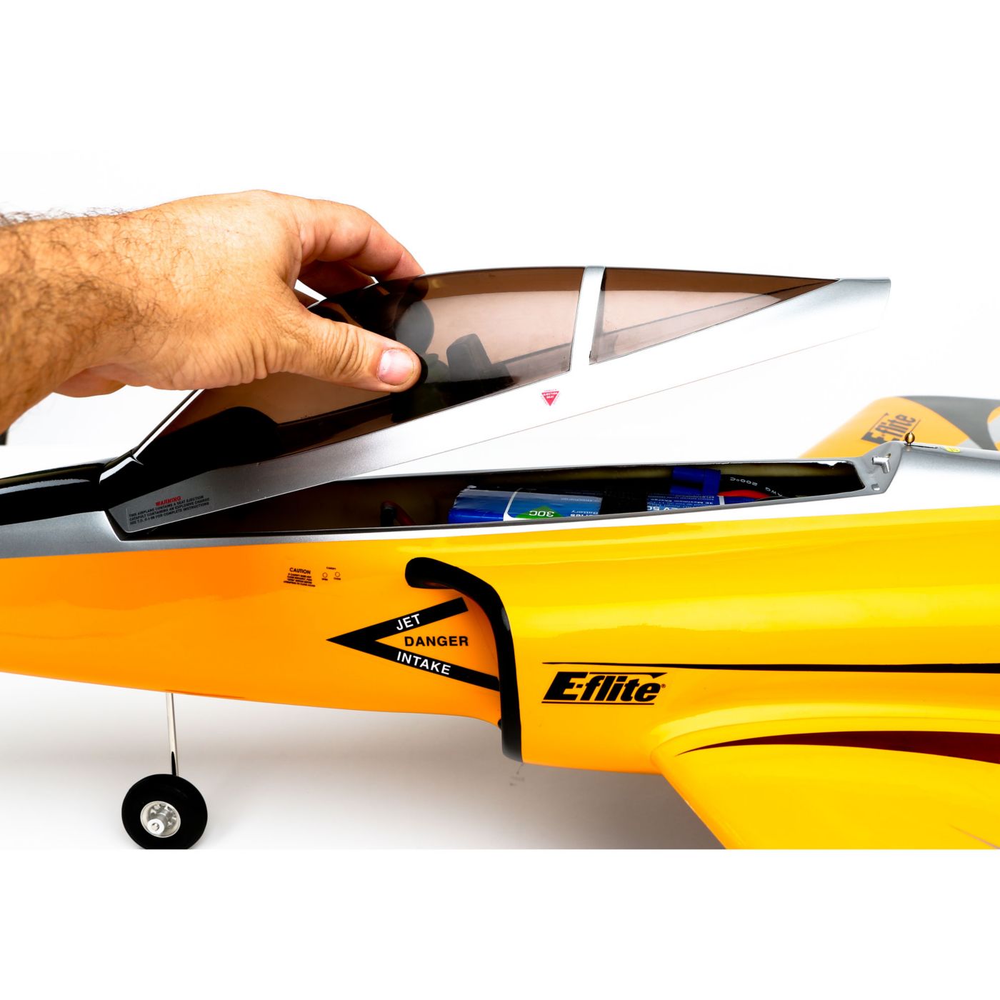 The quick-release hatch makes swapping out batteries and accessing electronics easy. Nose and belly hatches make access to the nose gear and EDF simple. A tinted clear canopy adds greatly to its "real" appearance in flight. Pilot figure not included.