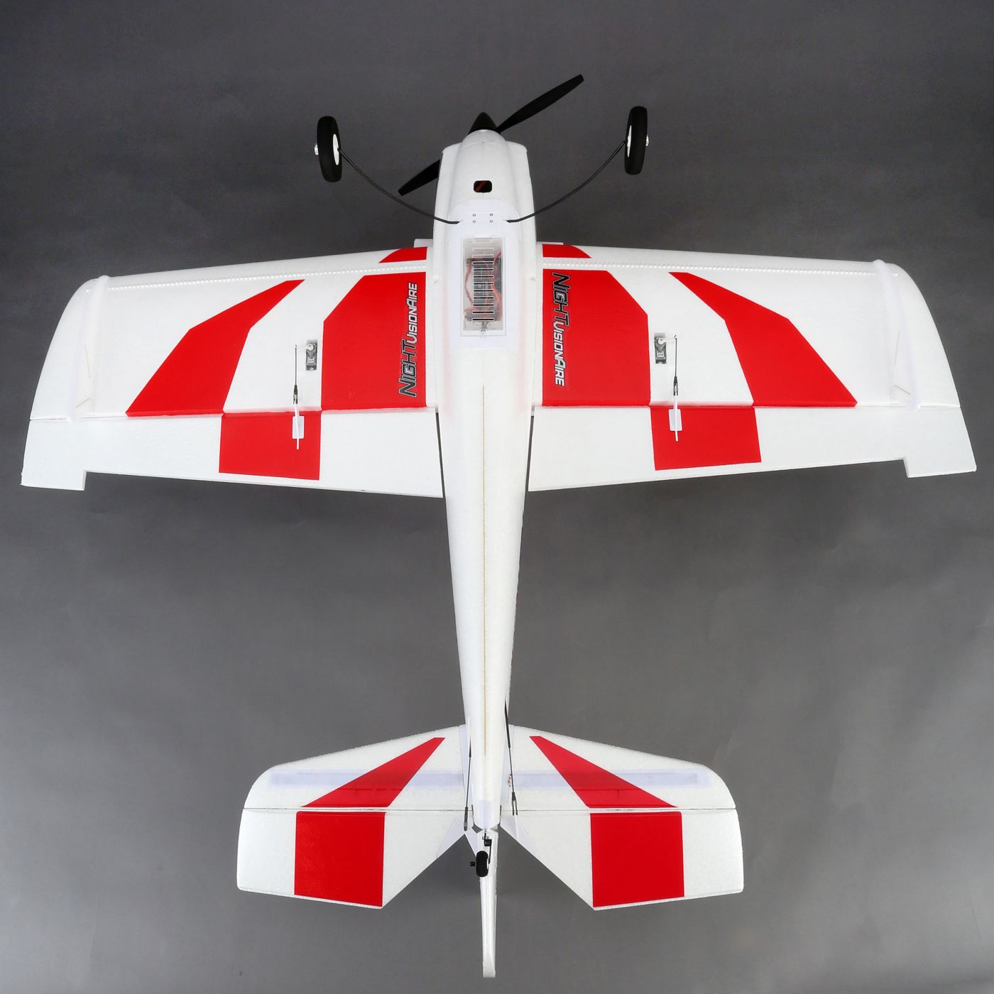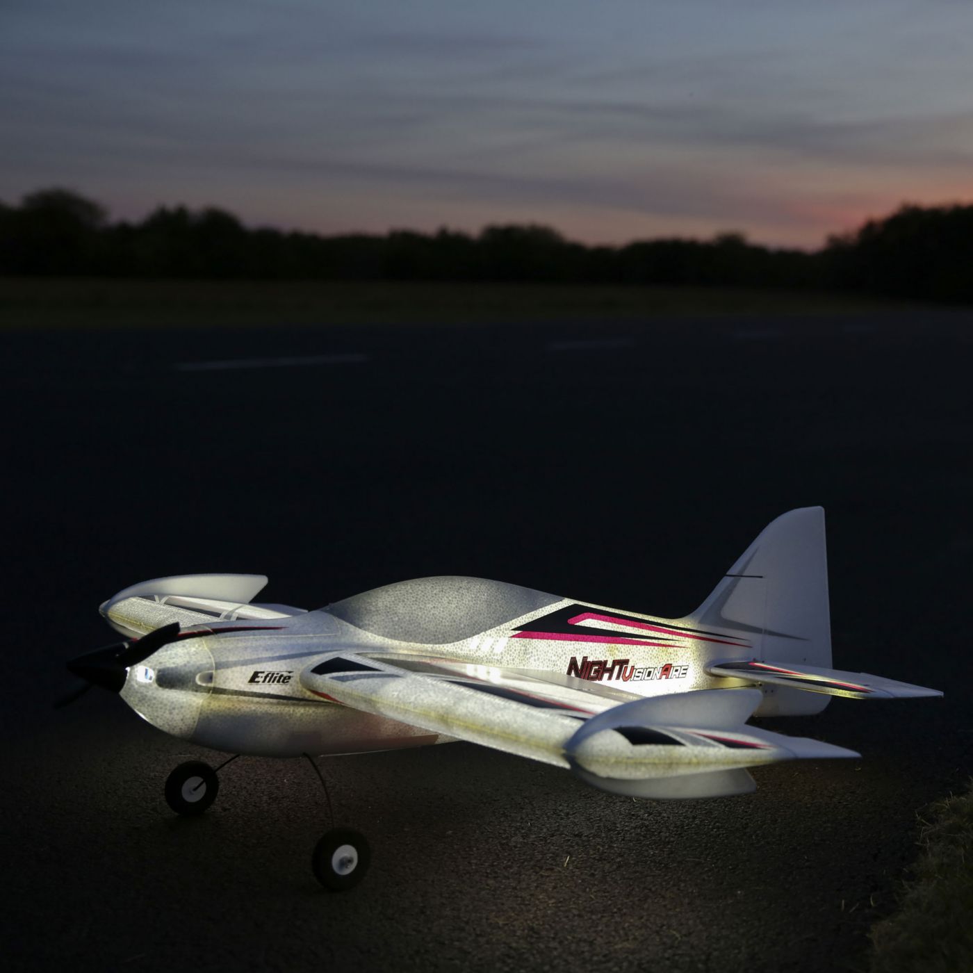 Whether you’re an intermediate park pilot looking to advance your aerobatic skills or a 3D expert who wants the versatility to fly day or night, the E-flite NIGHT VisionAire park flyer is ideal. All you need to start flying today is your favorite full-range 4+ channel programmable aircraft transmitter with Spektrum 2.4GHz DSM2®/DSMX® technology and a charged 2200mAh 11.1V 3S 30C Li-Po battery.