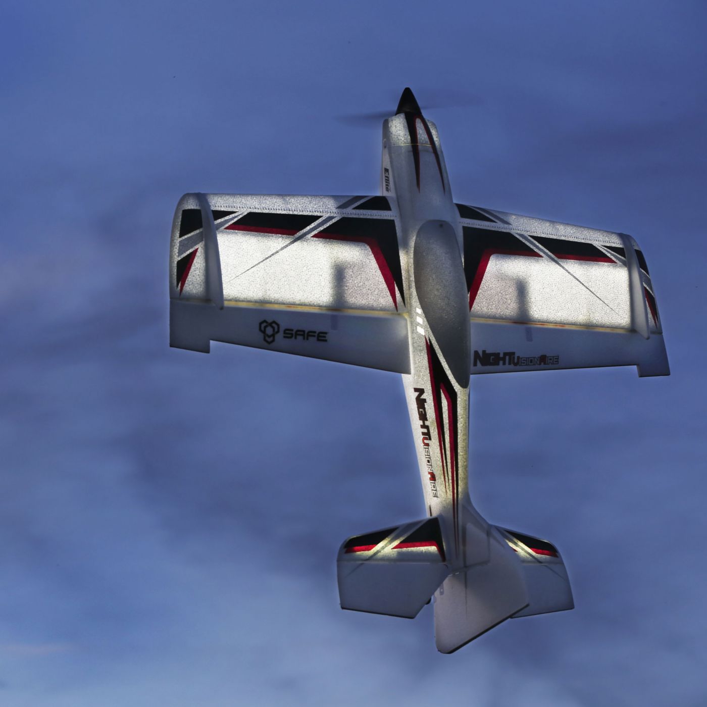 A brilliant LED lighting system illuminates the internal chambers of the Z-Foam™ structure. Now it’s possible for you to use the calmer weather conditions at night to explore 3D flight.