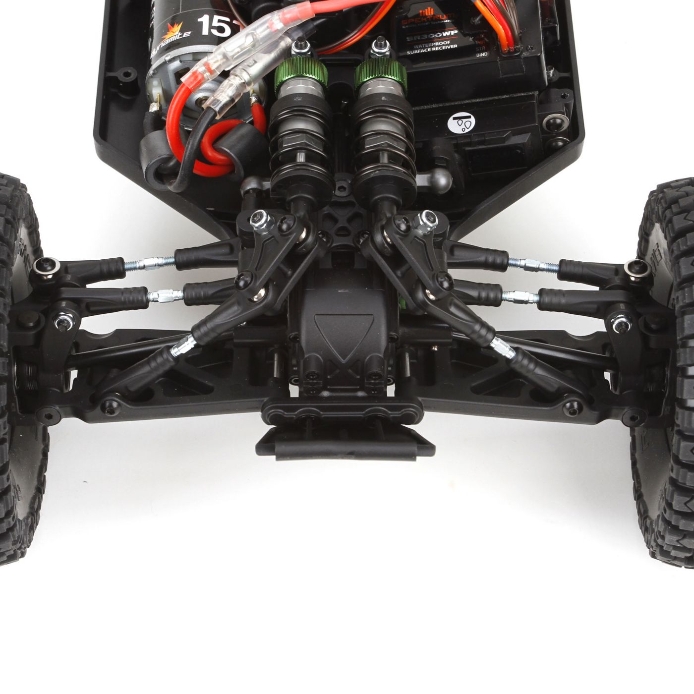 The Twin Hammers® chassis has long-travel suspension with a solid rear axle, just like many full-scale rock racers. This gives you all the footing you need when crawling through rock-filled ravines or blasting across the flats.