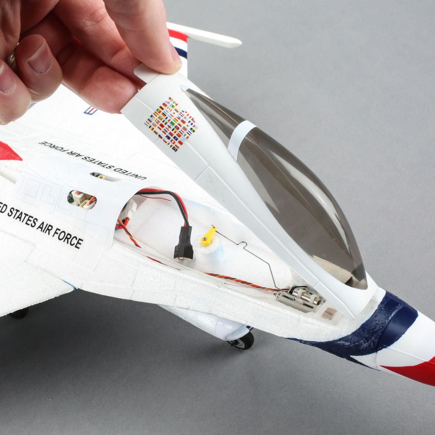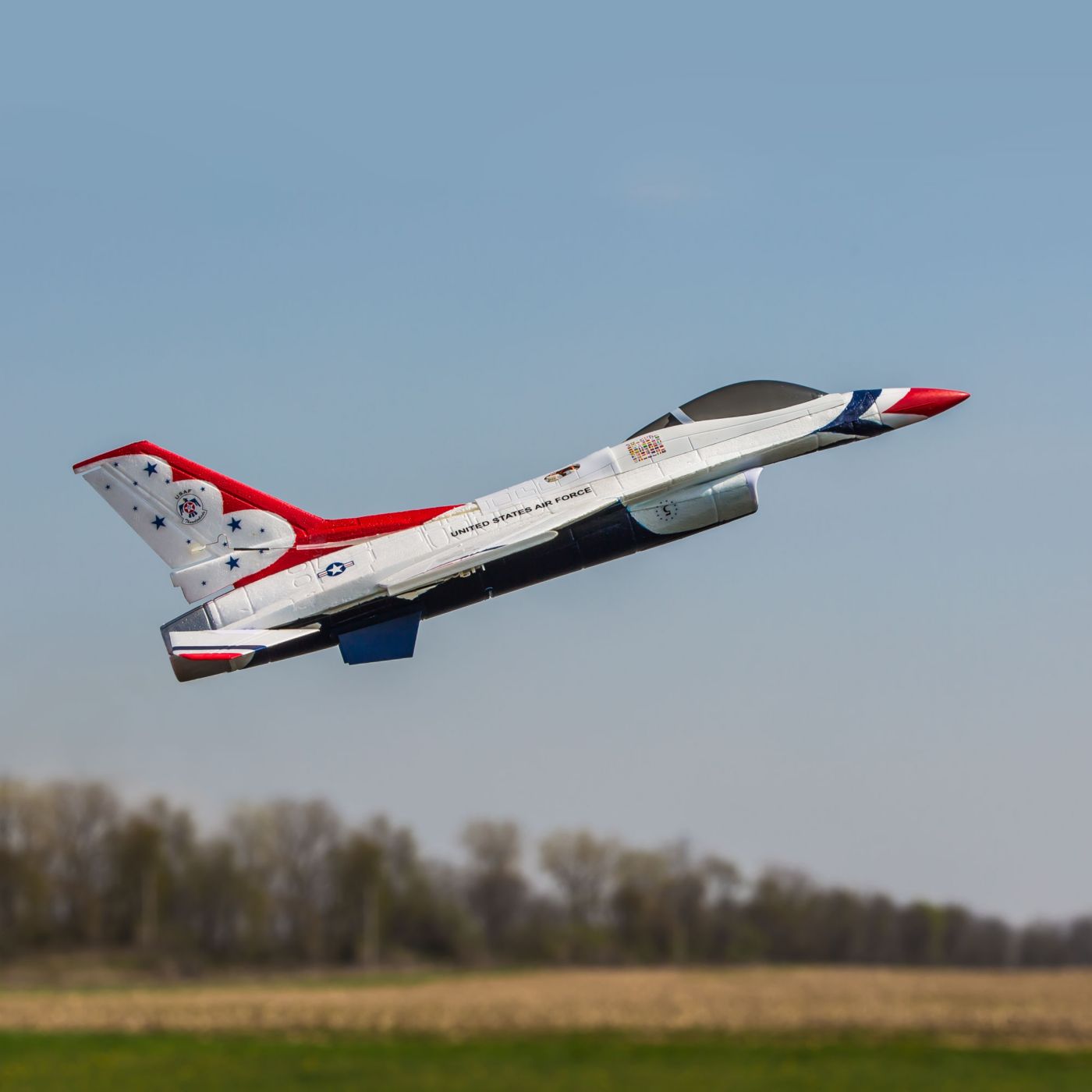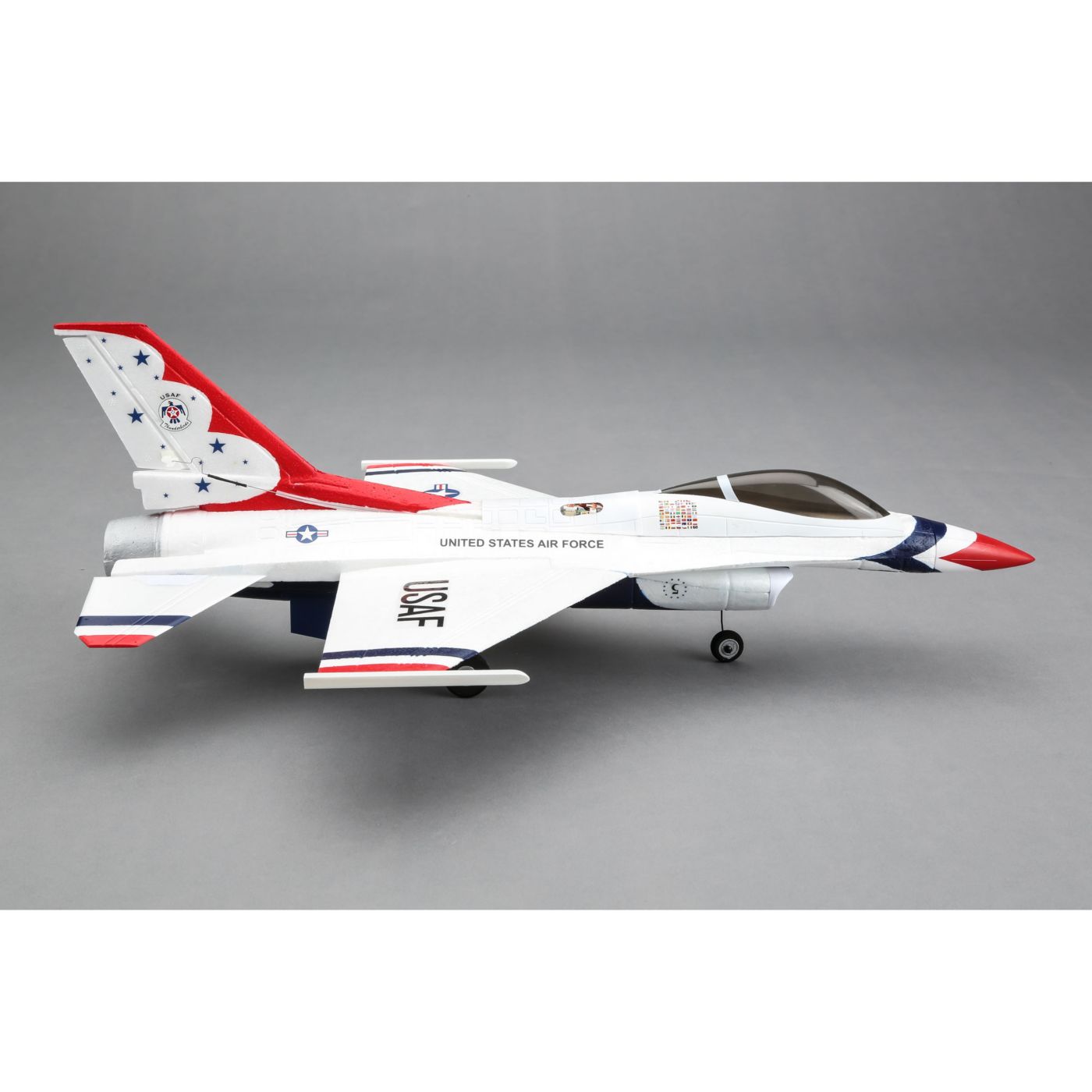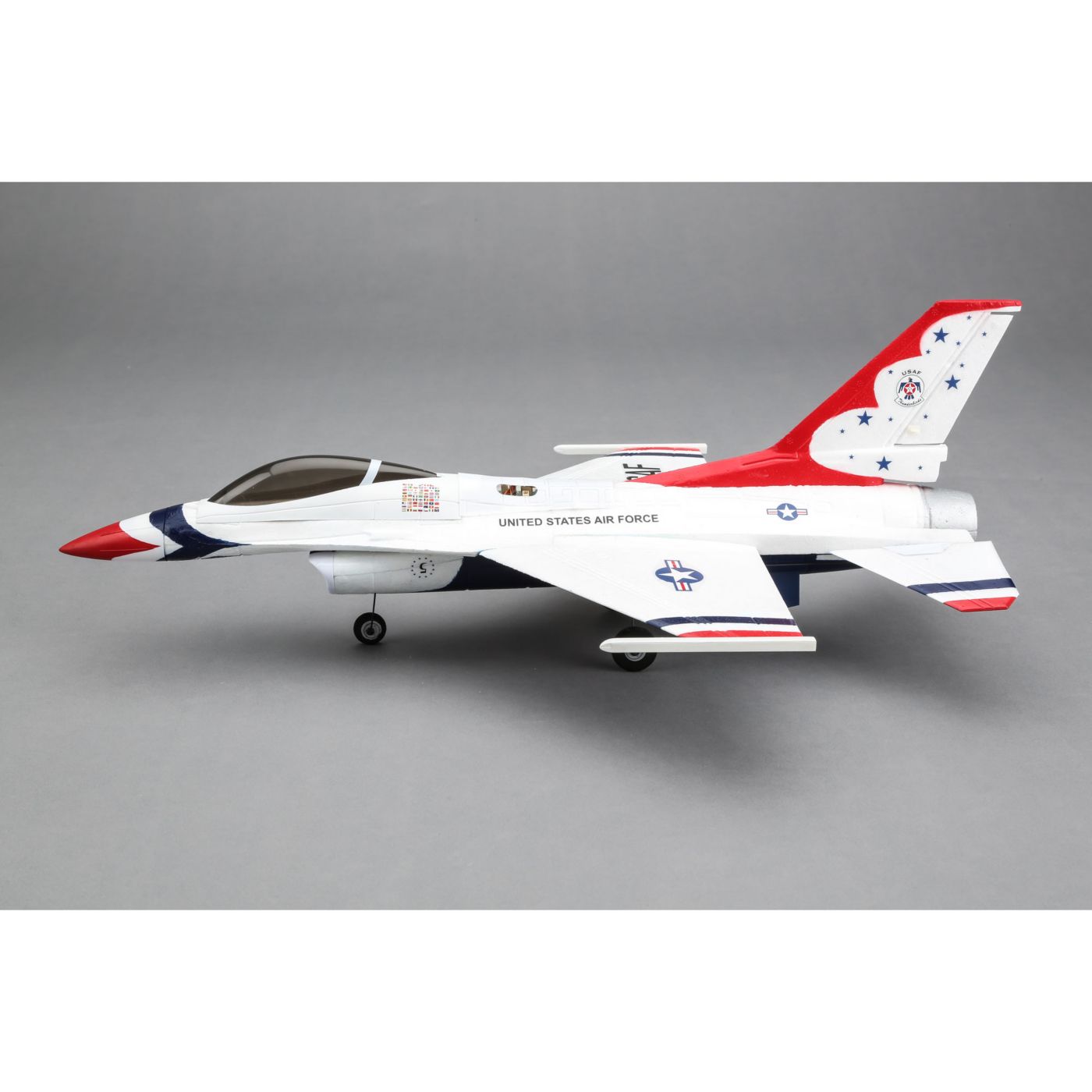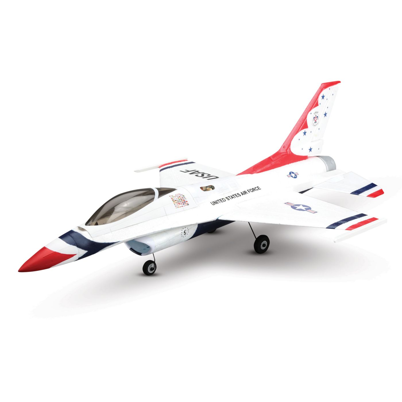 The United States Air Force Thunderbirds demonstration team has been inspiring aviation fans since the very start of the jet age. Going into a 33 year run, the incredible Lockheed Martin F-16 Fighting Falcon multi-role jet platform has been an exemplary part of the precision and dedication for which the team is known. The E-flite® UMX F-16 EDF jet is inspired by the engineering and world-renowned service record of the original by offering the excitement of a great flying RC jet you can enjoy just about anywhere.