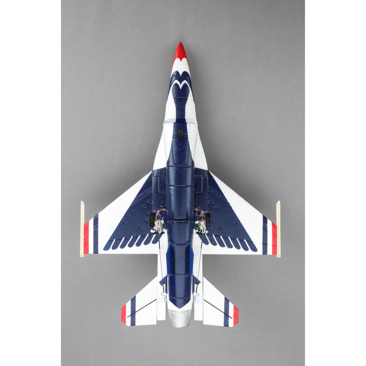 The lightweight landing gear setup features nose wheel steering that allows you to guide your UMX F-16 on smooth runways. The wire struts simply plug-in, so they can be easily removed for faster flight performance.
