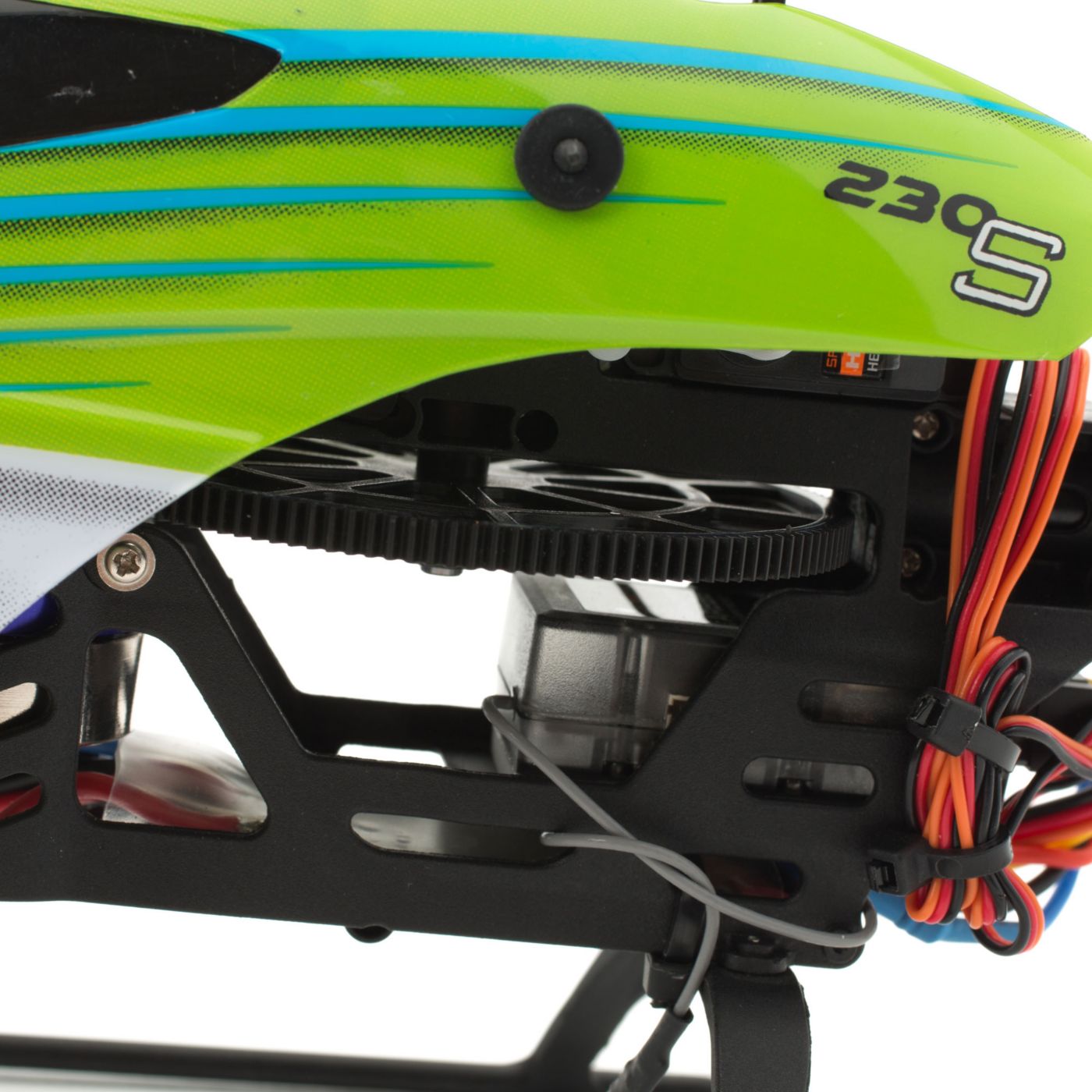 The 230 S comes equipped with the same 9-gram, digital metal gear servos used for cyclic control in high-performance Blade mini-helis like the 360 CFX.