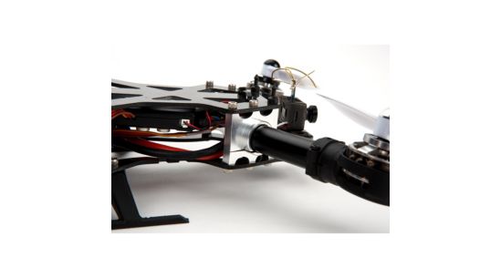 Durable, 2.0mm thick, carbon-fiber frame plates surround vital electronics and connect with tough CNC-machined aluminum supports that hold the aluminum motor booms.