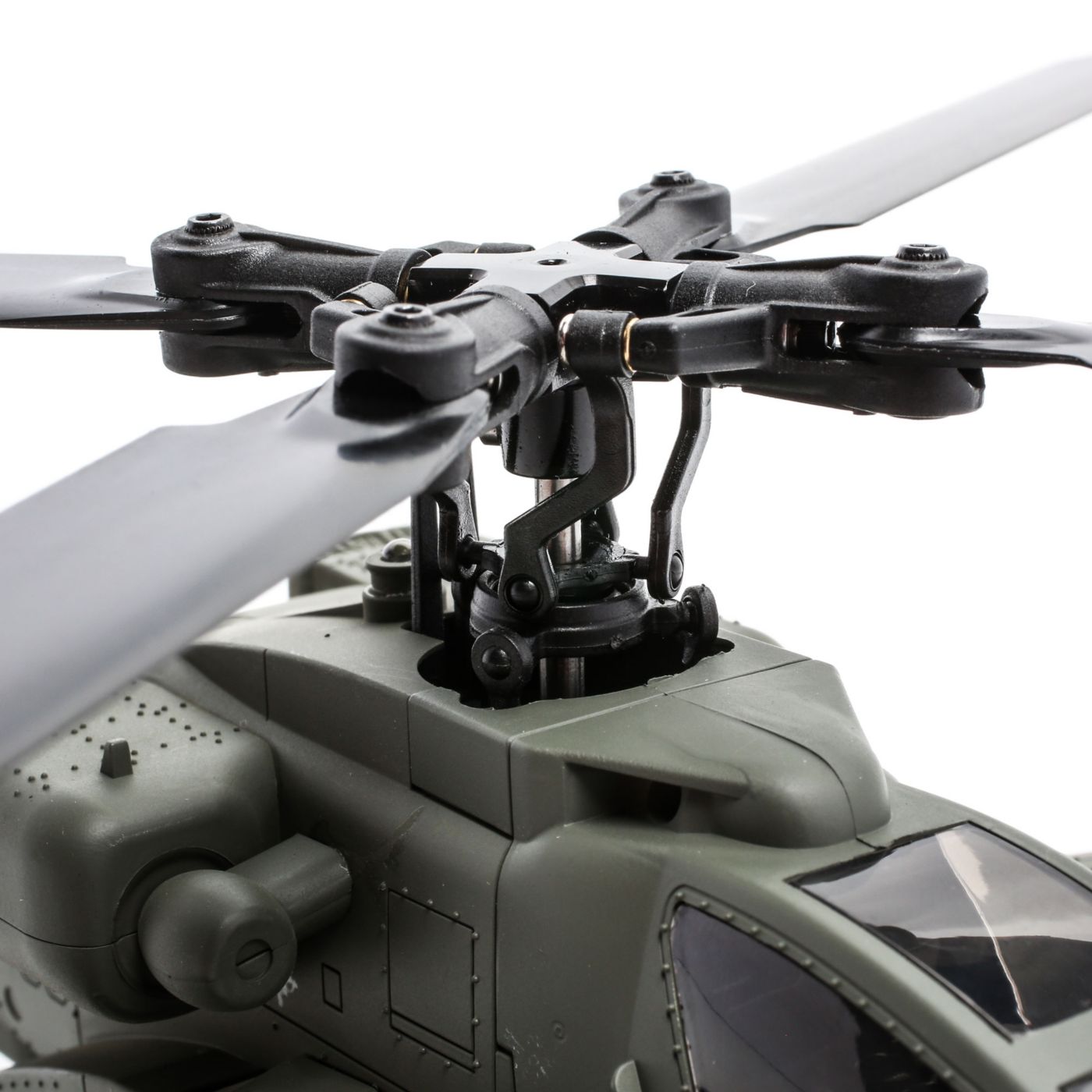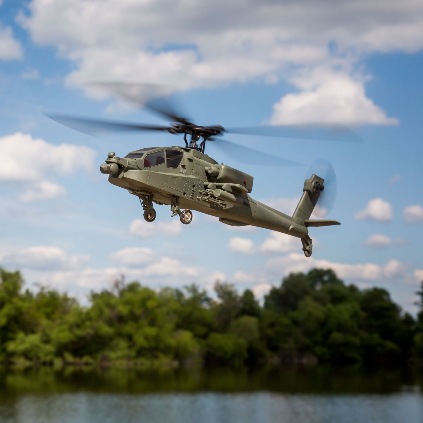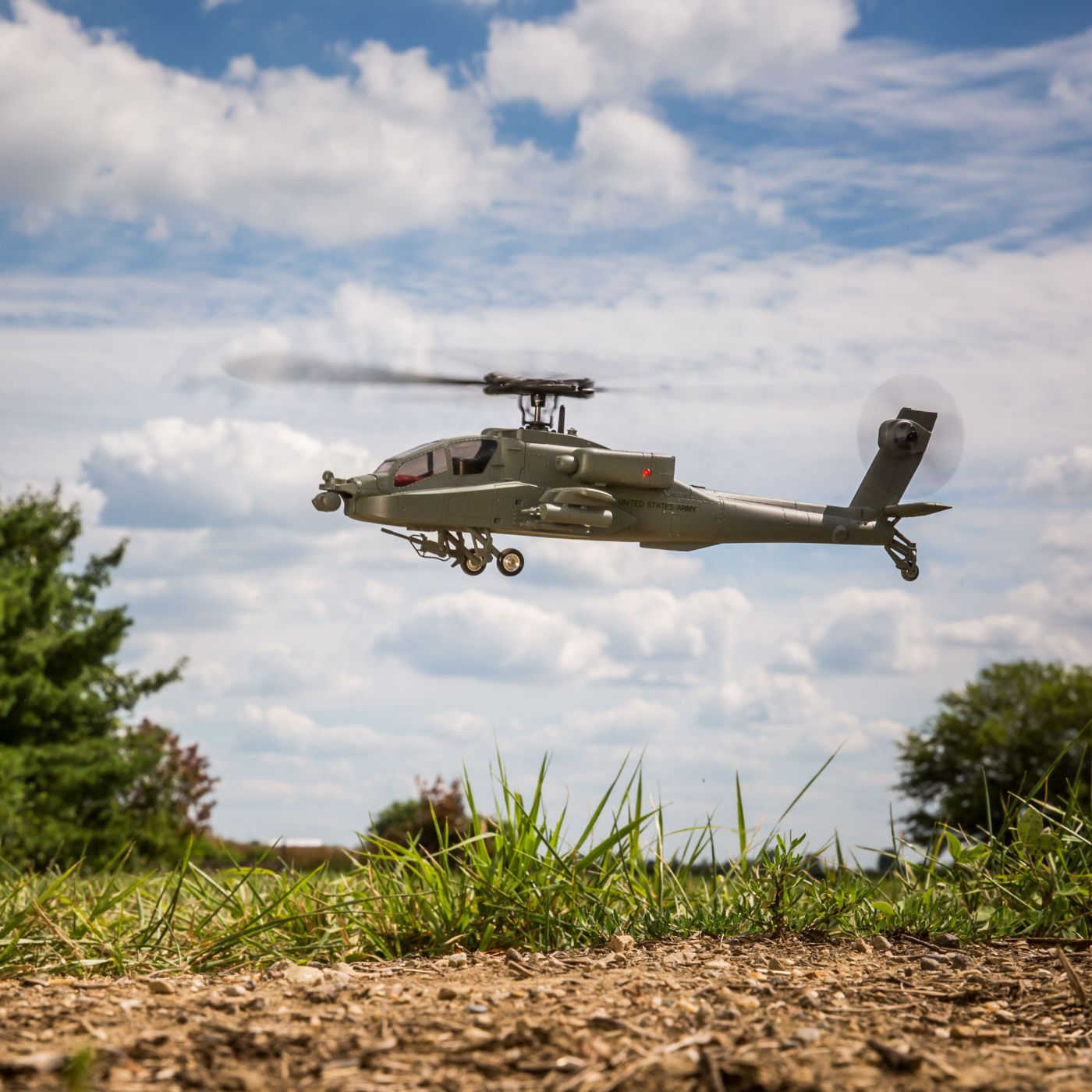 Whenever the United States military is called upon to settle a skirmish or major conflict, the Boeing AH-64 Apache™ attack helicopter is sure to lead the fight. That’s because few VTOL capable aircraft are as well equipped, heavily armed or self-reliant. Some RC models of the Apache are large, expensive, require significant talent to assemble and even more skill to fly. The Blade® Micro AH-64 Apache captures the pride of the U.S. Army and is officially licensed by the Boeing Aircraft Company. Standout details like a functional four-blade head, collective pitch mechanics and brushless power make it enticing to the experts, while innovative SAFE® technology gives you the push-button ability to prevent a crash.