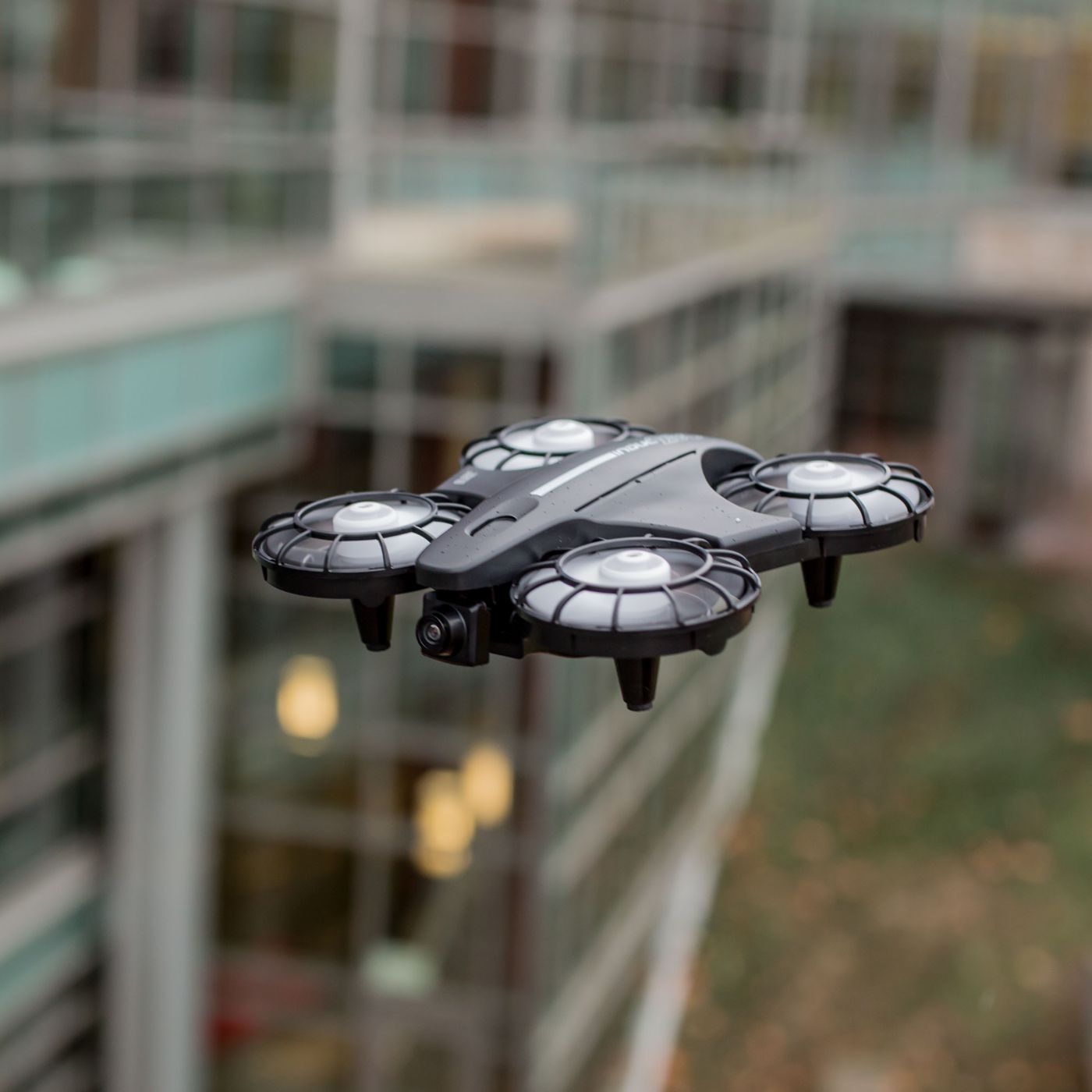 The ducted fan design makes the airframe inherently more durable than propeller driven quadcopters. The special housings encased around each multi-blade rotor help protect the drone and other objects from damage should any bumps occur during flight.