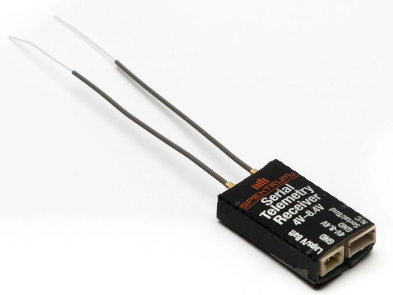 The SPM4649T quad racing serial receiver offers full-range performance with integrated telemetry providing FPV racing enthusiasts with a serial receiver that can transmit vital telemetry data. Like SPM4648, the 4649T offers a 1-wire serial connection that is compatible with most flight controllers and an input for telemetry data such RPM, battery voltage and a whole lot more. Spektrum enthusiasts with telemetry capable transmitters such as the DX6, DX8, DX9 or DX18 can now receive on-demand telemetry data, and by using the voice functionality of compatible G2 transmitters, can have specific telemetry data outputted via the on-board audio system.