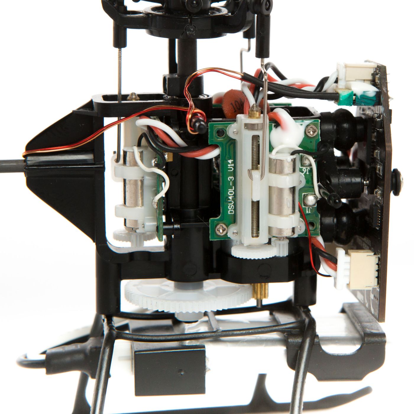Linear cyclic micro servos drive the swashplate for durable and responsive control in any situation.