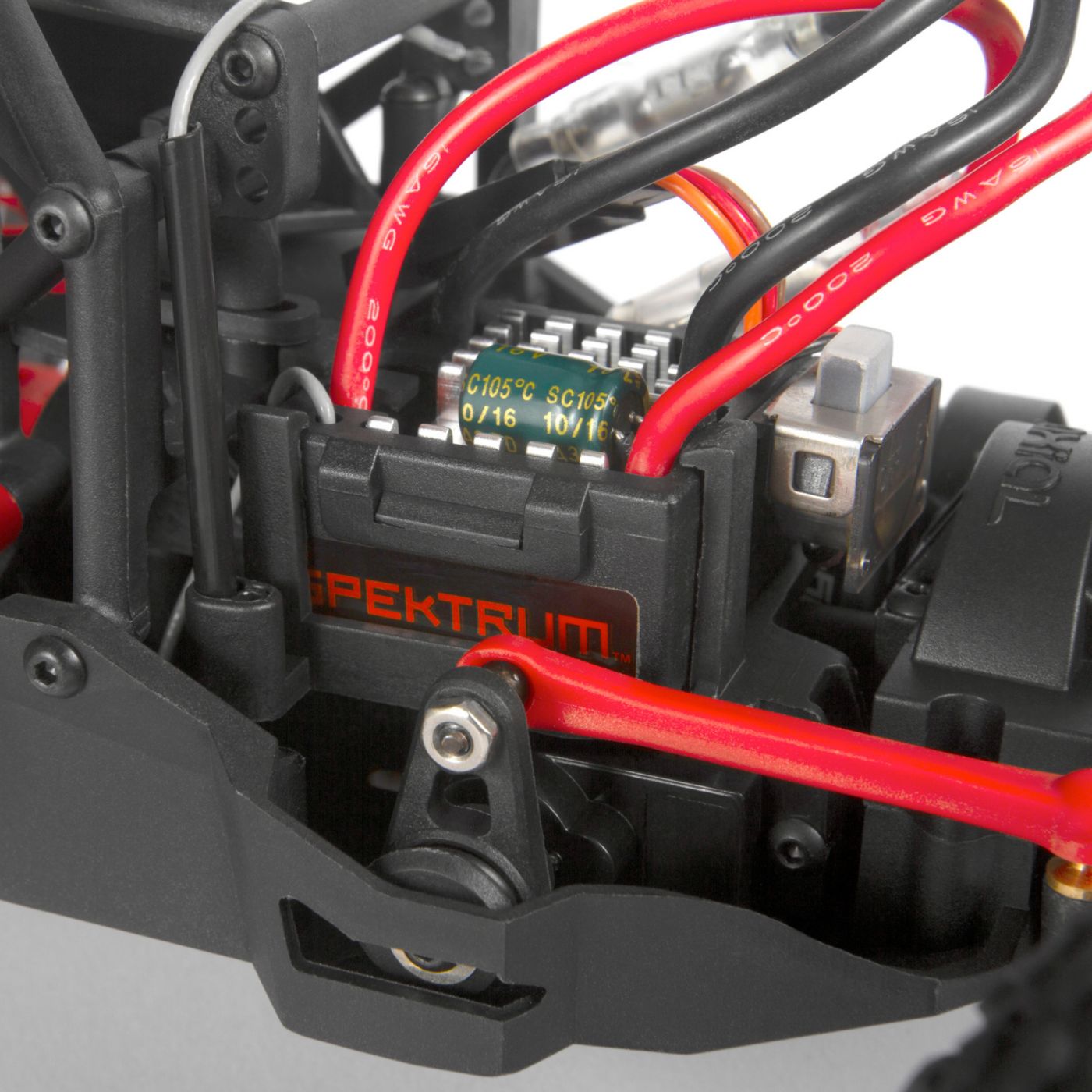 Steering is powered by a Spektrum high torque micro servo, featuring a metal gear train to help withstand rough offroad conditions.