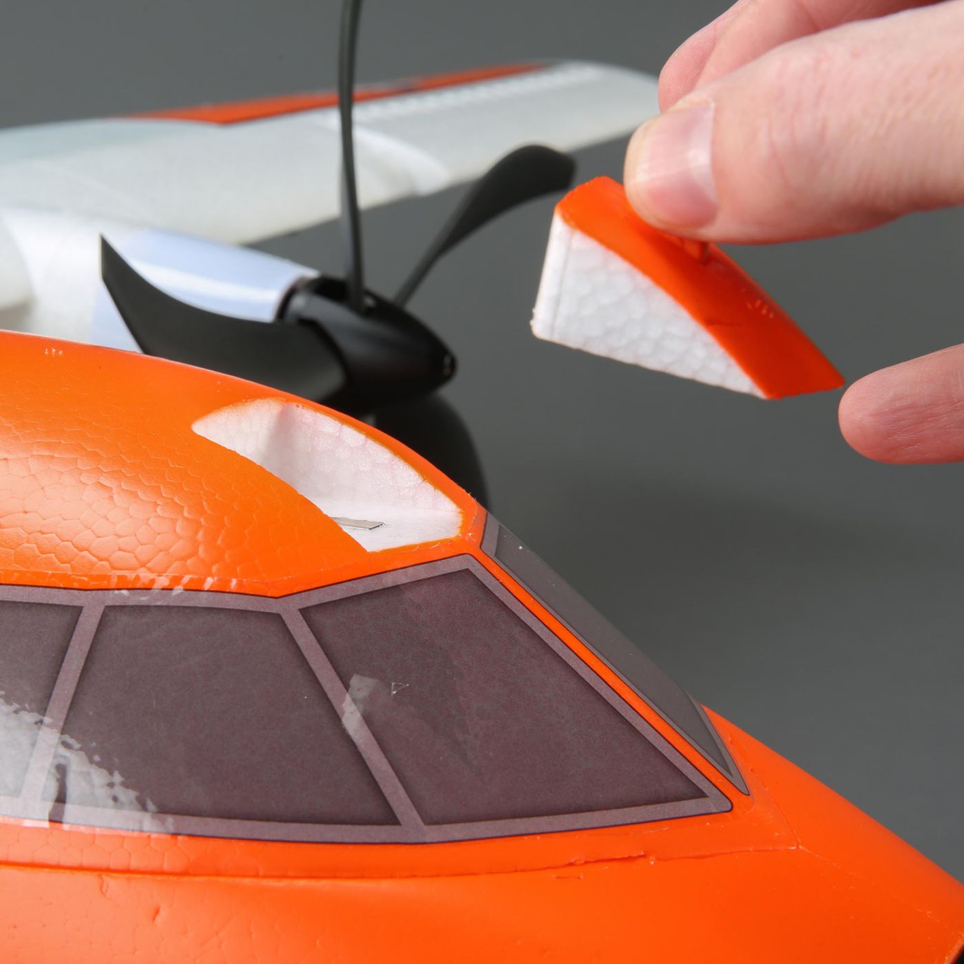 The magnetically secured nose cone can be removed for easy installation of GoPro® and similar action cameras to record High Definition footage while you fly (cameras sold separately). You can also install a separate First-Person View (FPV) camera in the mounting position on top of the extremely large, magnetically secured top hatch (FPV camera/gear sold separately).