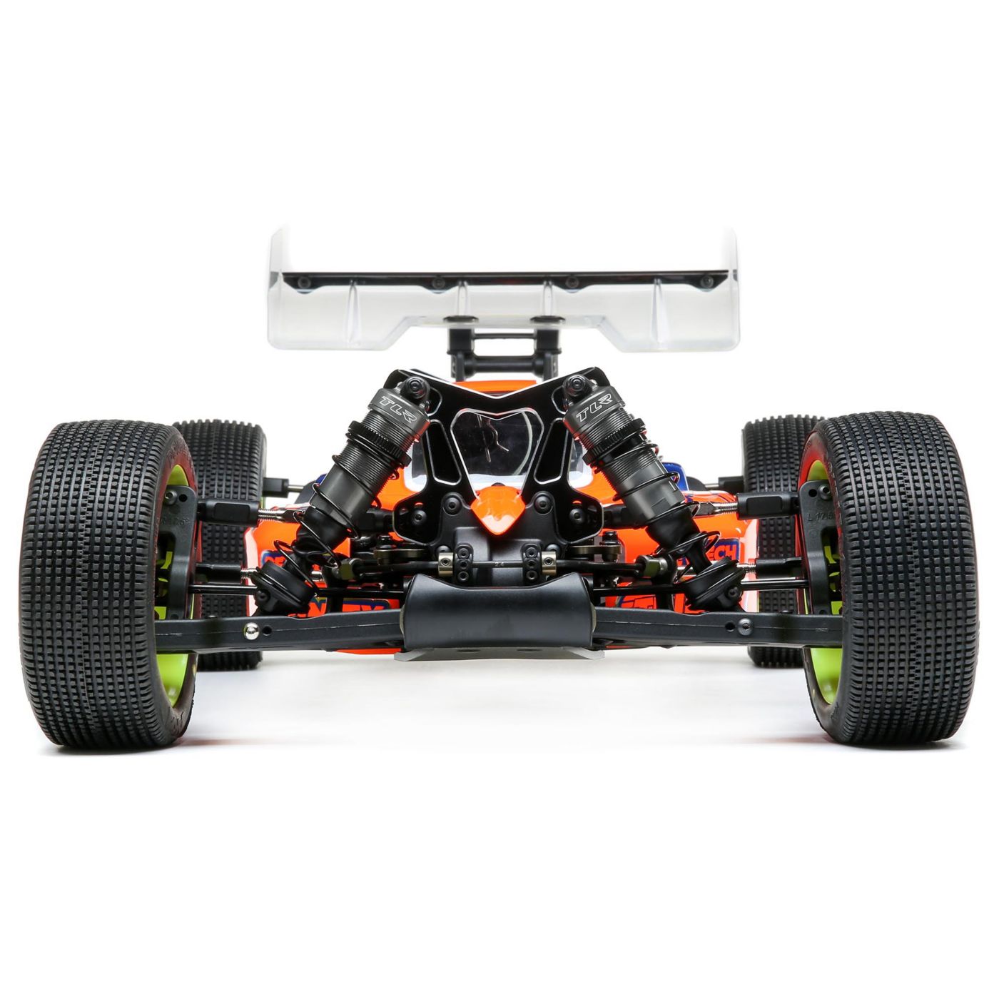 The 8IGHT-X next generation suspension geometry has been completely revamped making a car that is fast, nimble, and easy to drive. This includes a myriad of updates including longer front and rear arms, wider front pivot with less scrub radius, narrower rear pivot, and updated hub offset.