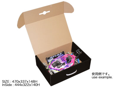 1/8サイズレーシングカーや1/8GPバギーまで収納出来る大型の強化ダンボール製ケース。シャーシとボディをまとめて収納。