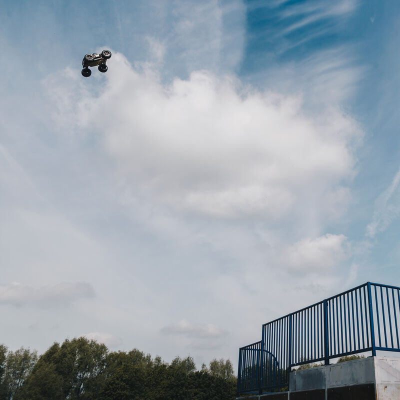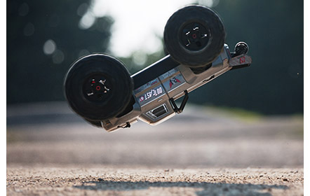 The ready-to-run NOTORIOUS™ 6S BLX 4WD Stunt Truck includes the new Spektrum™ 2.4GHz STX2® transmitter and comes with its SRX200 receiver and ADS-15M metal-geared servo already factory-installed. The only required items are a 4S or 6S LiPo battery, compatible charger, safe charging bag, and 4 x AA transmitter batteries. ARRMA® recommends the Dynamite® Powerstage™ Stage 6 bundle (DYN1540), which includes a Passport™ Ultra P2 100W AC/DC Multi-Charger and two Reaction HD 5000mAh 3S hardcase LiPo batteries with EC5™ connectors.