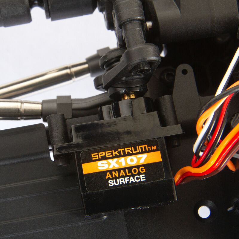 The included Spektrum DX3 radio features exclusive DSMR® technology for superior range, response, and interference resistance. It's also fully compatible with the Smart telemetry potential provided by the vehicle's installed Spektrum Firma Smart 40A ESC/receiver. In addition, it comes with the thumb steering attachment for greater versatility when driving.