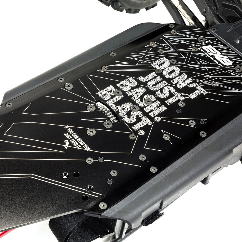 "Designed Fast, Designed Tough" may be an understatement when describing the KRATON® Extreme Bash Roller Monster Truck. Made of strong anodized 7075 T6 aluminum, the laser-etched chassis plate gains further rigidity from the use of front and rear aluminum chassis braces. Strong composite chassis side pods and a center body support and brace provide more rugged resilience.