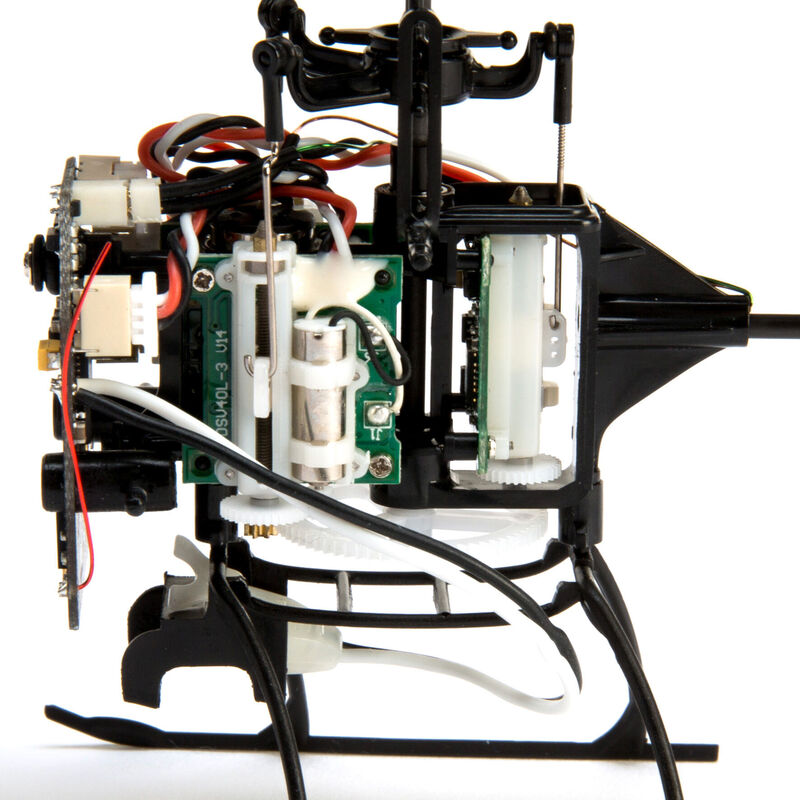 A new flight controller comes totally re-tuned from the ground up improving AS3X® stability, an improved SAFE® mode with angle demand, and an improved panic recovery. On top of that, the SAFE Z altitude control utilizes the on-board accelerometer to keep the heli at a consistent altitude. With its vertically mounted flight controller, it significantly improves damping and removes vibration to the gyro. What you get is a heli with incredible control and performance and the ability to execute dazzling 3D maneuvers. Linear servos deliver the muscle for impressive control authority while the 45C LiPo flight battery produces efficient power for 3D flight.