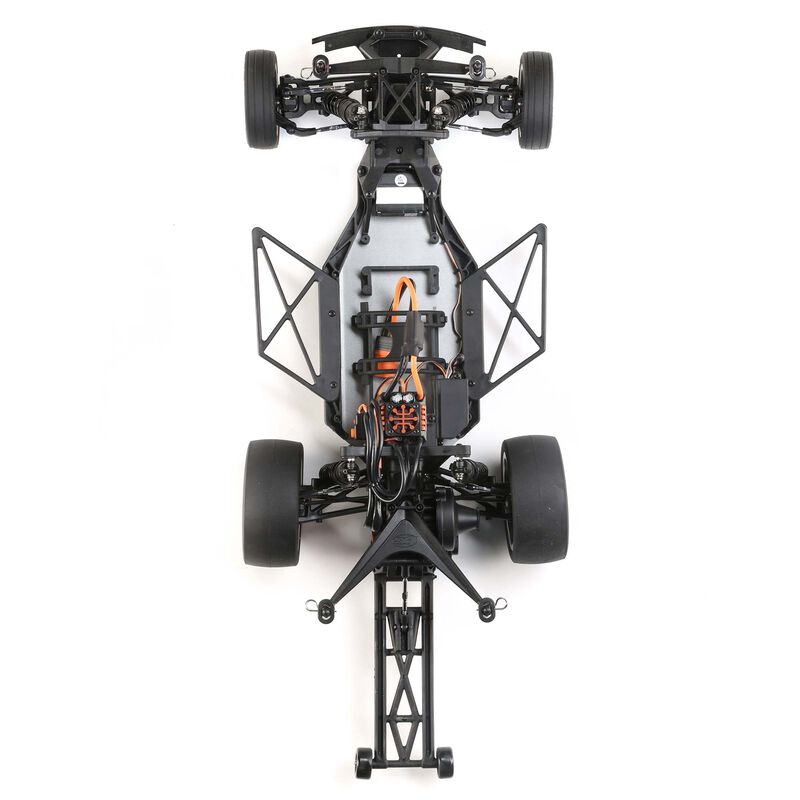 Setting the standard in the industry for years, the Losi® 1969 Camaro Drag Car is the most competitive No Prep Drag Racing Ready-to-Run. With the popularity of No Prep Drag Racing exploding, Losi has once again taken it to the next level with a truly innovative design and the quality workmanship drivers expect. The 69 Camaro has been carefully crafted to give a classic look while still fitting into the rules and regulations set by the No-Prep Drag Racing scene. It has all the advantages of an aluminum chassis such as electronics protection, side impact guards, and a clean wire management system with plenty of 22S option parts. It's designed with racers in mind with many outstanding features including officially licensed Mickey Thompson tires, limited travel oil filled front and rear shocks, low center of gravity rear shock tower, extended body mounts, optional heavy duty sway bar, adjustable weight front bumper, elevated transmission, adjustable turnbuckles, and a fully adjustable wheelie bar. You get an all-metal gear transmission for concrete dependability along with a Spektrum SLT3 transmitter and dual protocol receiver, Spektrum Firma 100 amp Smart ESC, and Spektrum Firma 6500kv brushless motor. From its unmistakable body, to rapid handling, everything about the Losi 1969 Camaro Drag Car is ready to provide racing thrills like nothing else.