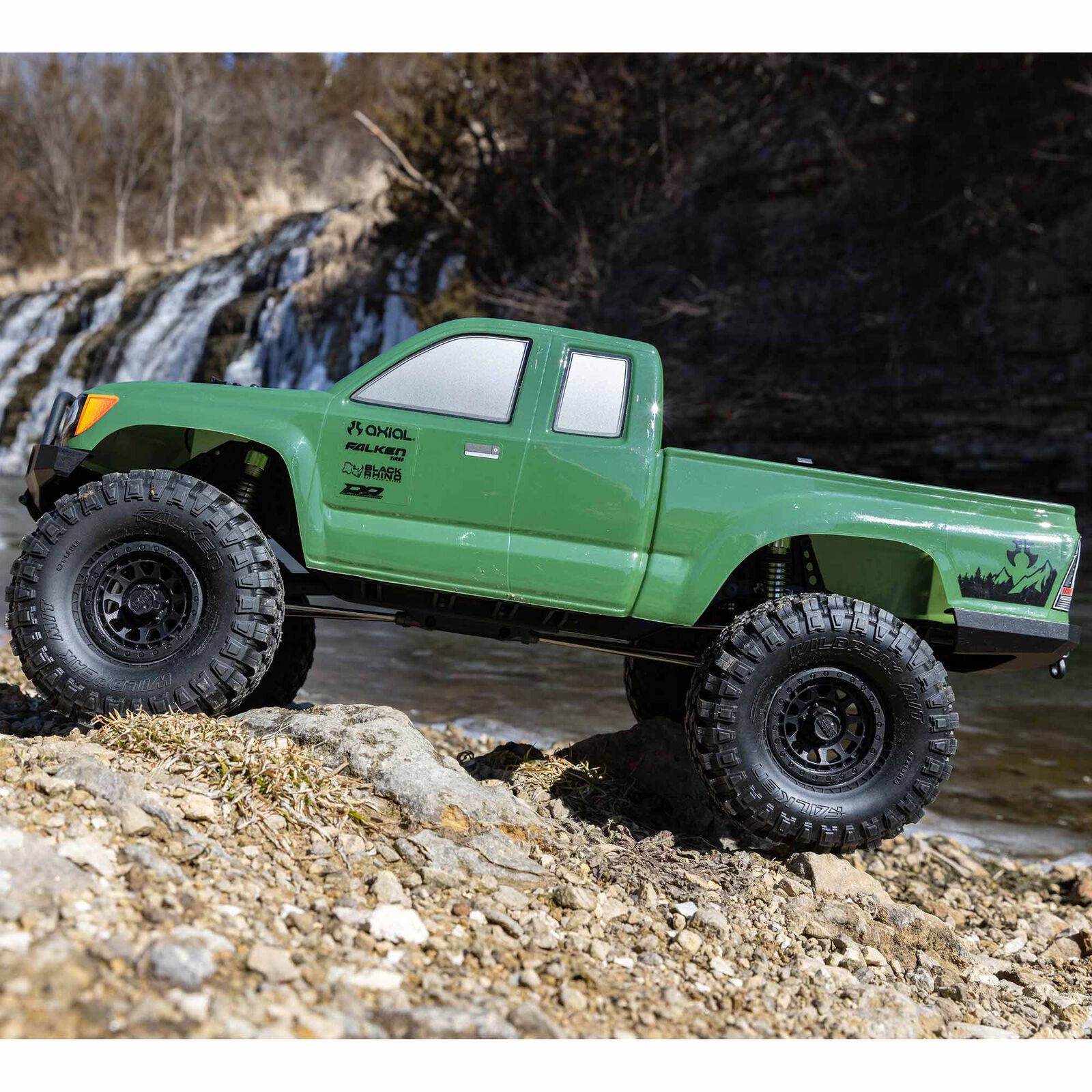 Officially licensed Black Rhino wheels add scale looks. The R35 compound Falken Wildpeak tires included with the SCX10 III Base Camp 4WD provide good ground clearance and a secure grip on dirt, rocks, and all other off-road surfaces.
