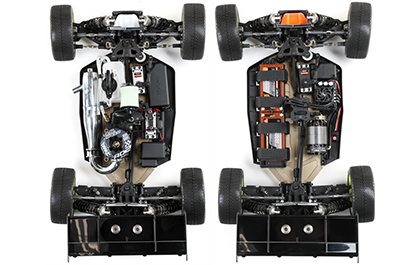 The chassis side guards have been updated to allow for more room as well as moved back 3mm to provide for tire expansion. The E-Buggy side now has the battery tray molded into the side guard for a lower center of gravity and lighter weight.