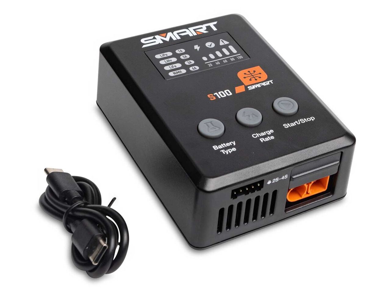 The Spektrum S100 Smart USB-C Charger provides fast, easy charging for all modelers, especially using Smart batteries — with Auto Charge simplicity, one-connection balancing, IC3® or IC5® output ports for adapter-free convenience, and more.