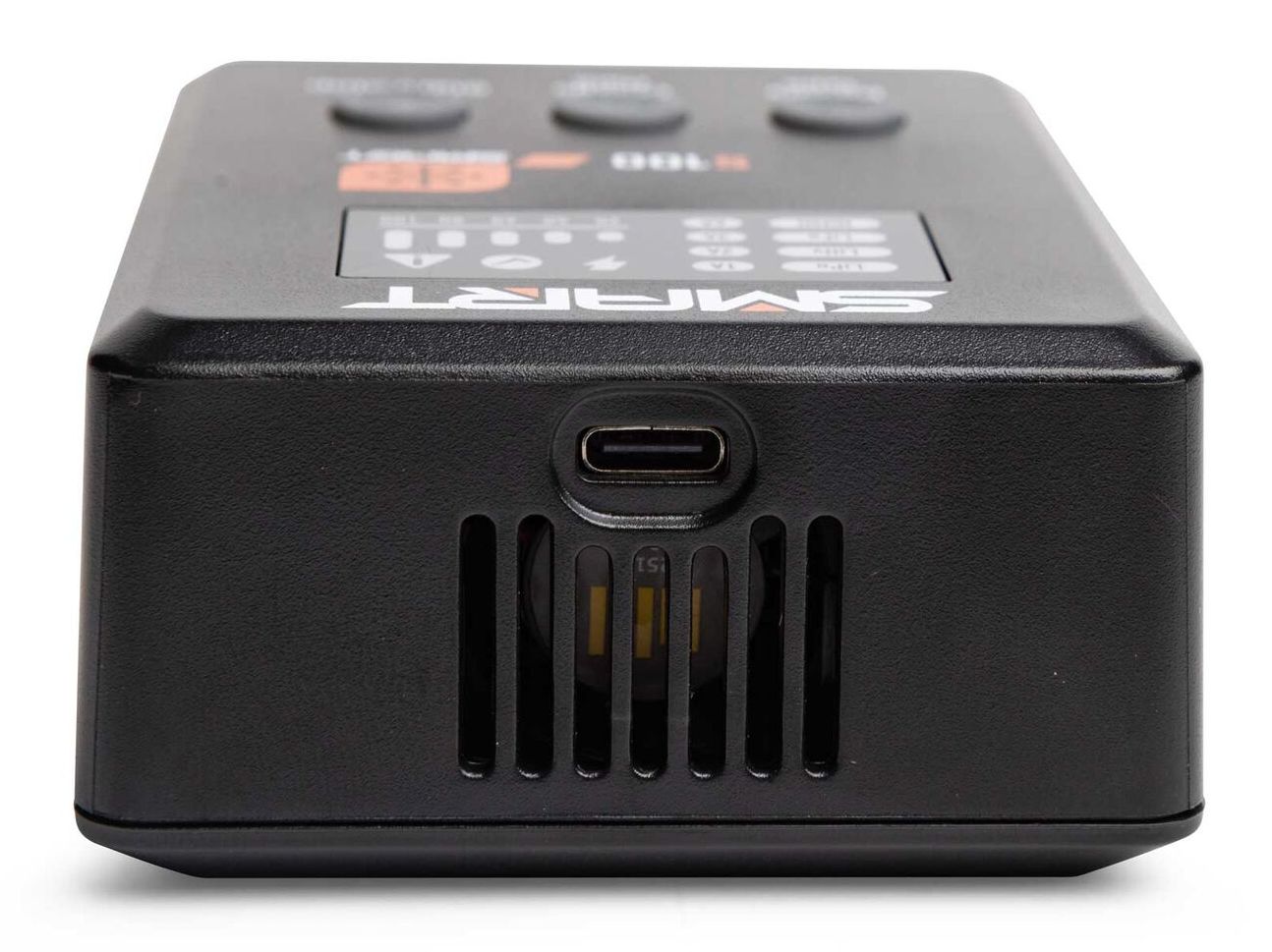 The charger's sleek case fits perfectly on your workbench and in your pit or field bag. Its power cord is detachable for easy transport. Rubber bottom grips help the charger stay in place as you connect, charge, and disconnect your RC batteries. Update the charger's firmware through the same USB-C power port on the back of the S100 charger.
