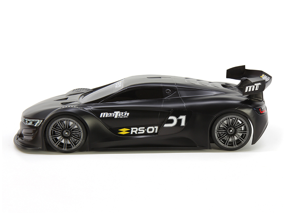 From MonTech Racing is this body for the GT10 category, the RS01. The shell replicates the GT racing model of the well-known French car manufacturer. With aggressive shapes, the RS 01 offers absolute performance. With the RS 01 Mon-Tech Racing offers a model of the highest production quality and performance on the track. The RS 01 can be mounted on all 1:10 scale Touring Car chassis and is molded from high quality polycarbonate. The kit contains pre-cut stickers, window masks and rear wing fixing screws.