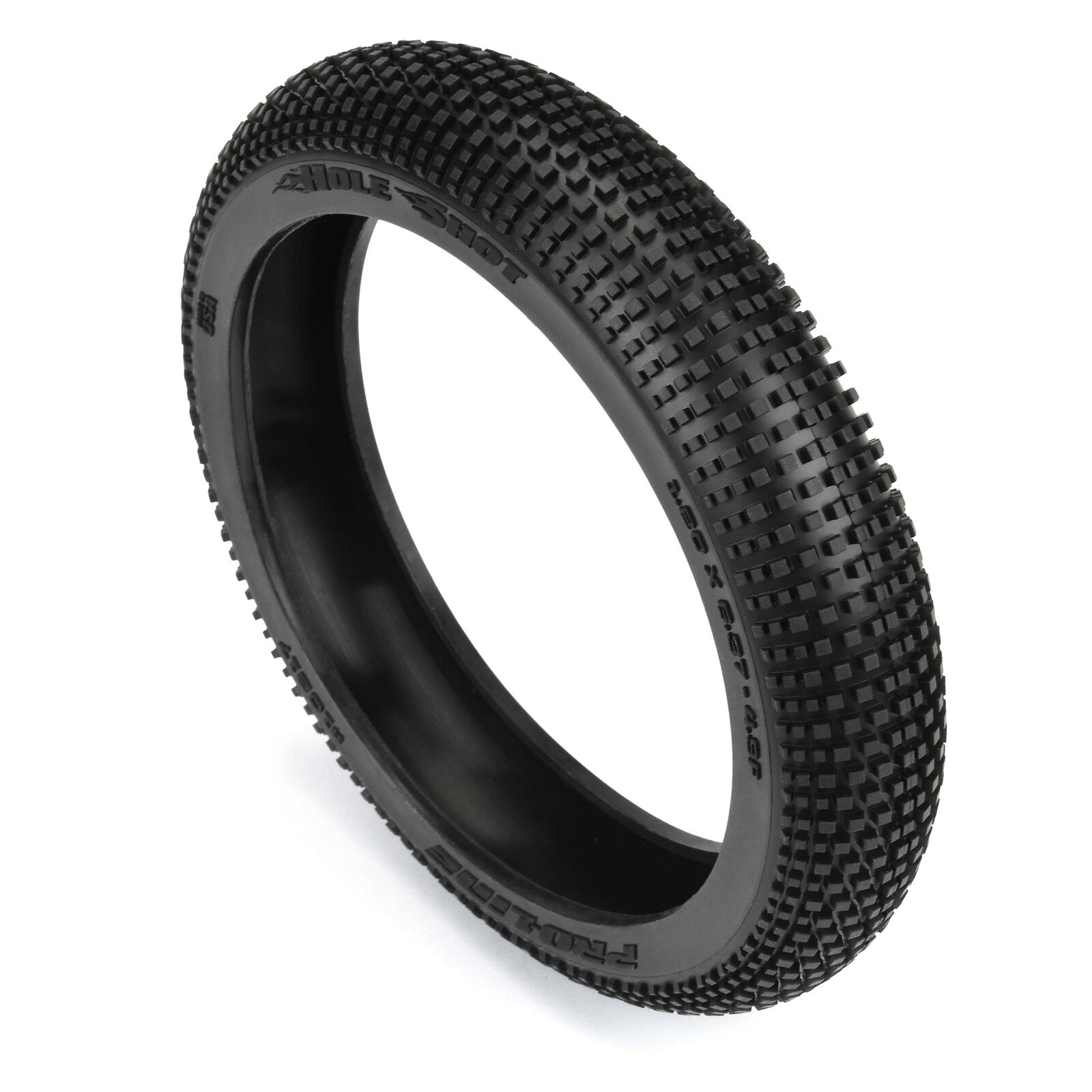 This is a Hole Shot Motocross Front Tire. Pro-Line's innovation team is proud to bring the competition-quality tire that you know and trust to the revolutionary PROMOTO-MX motocross bike. The iconic mini-pin Hole Shot tread design provides the optimum level of traction in dusty, hard-packed, and grooved conditions. The soft M3 compound and closed cell insert make the Hole Shot the ideal tire to smoke your buddies at the local dirt track! This tire is 100% focused on all-out performance, and it's especially effective when the track is watered.