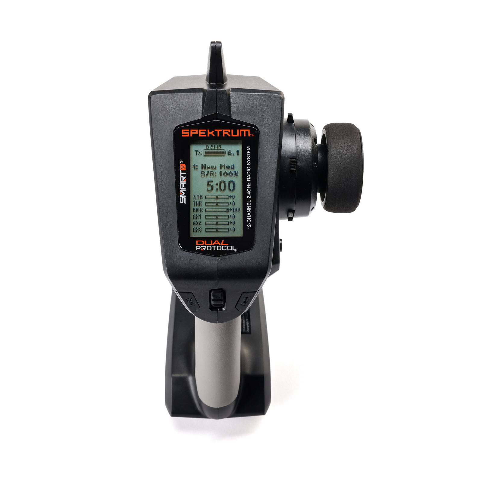 When combined with Spektrum Firma Smart ESCs and Spektrum Smart capable receivers, the DXC+ receives telemetry data right to your transmitter through the Smart Throttle port on the receiver. Smart Throttle ESCs can send RPM, speed, ESC temp, volts and amp draw.