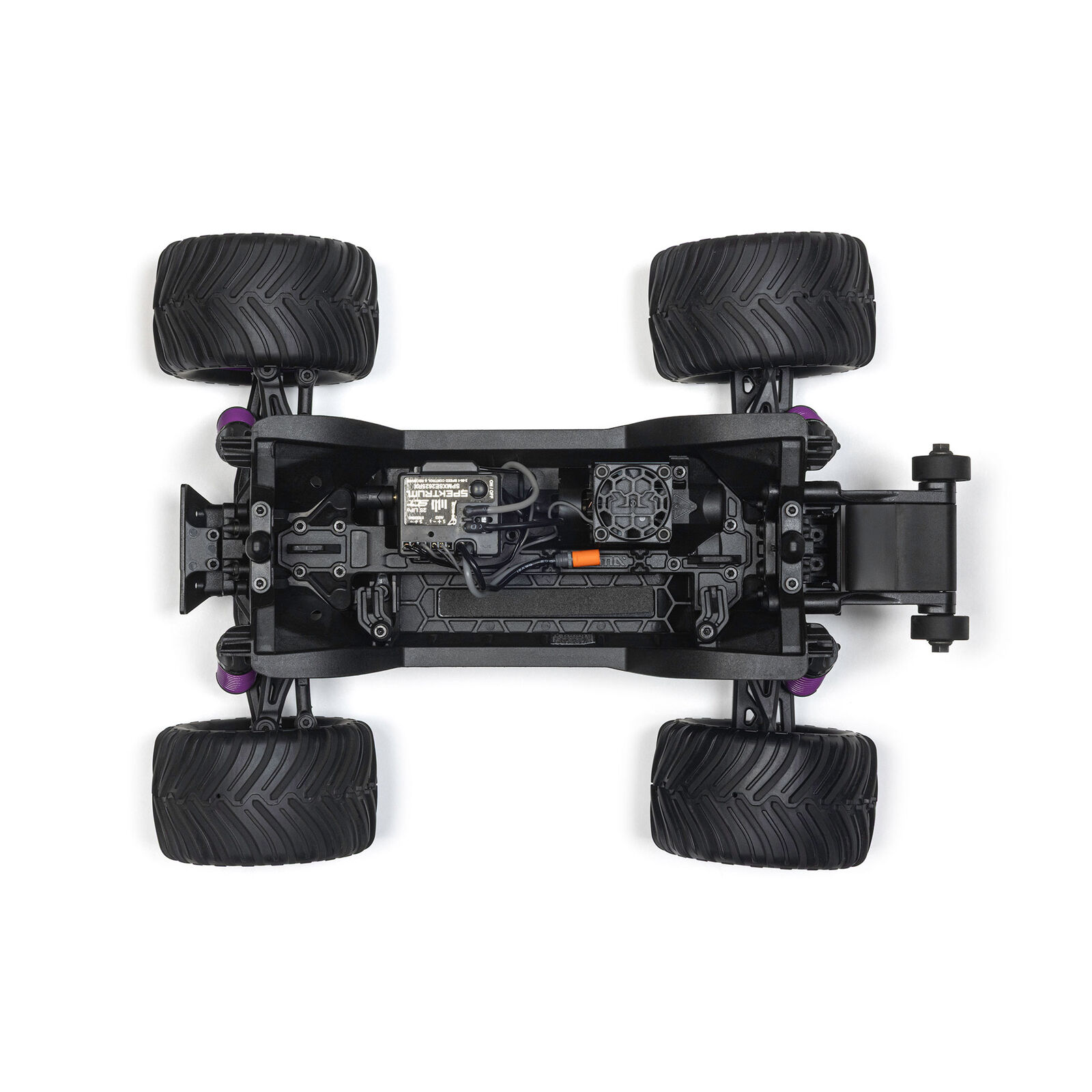 The enclosed drivetrain with rugged metal gears carries power from the installed 380 brushed motor to all four wheels for high traction. The entire power system is well-protected for dependable performance on all terrain.