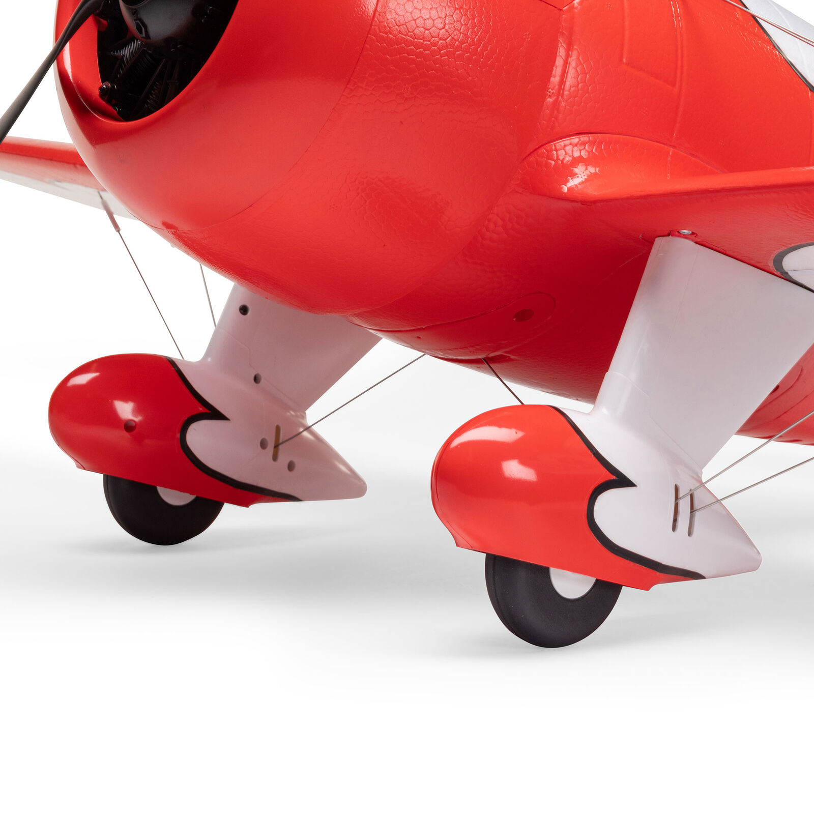 It features an authentic outline and an abundance of scale details, including molded-in panel lines, a simulated radial engine, flying wires, and a pilot figure. Functional features include shock-absorbing landing gear and wheels specifically designed to make it easier to land, along with a steerable tailwheel. The one-piece wing includes hands-free connections, yet the Gee Bee 1.0m is sized to be easy to store and transport without disassembly. The factory-installed digital and metal-geared servos provide precise and reliable control at every speed. The power system includes a Spektrum™ outrunner motor and an Avian™ 70-amp Smart Lite ESC, which are compatible with popular 4S 3200-5000mAh batteries. The Bind-N-Fly® Basic version is also equipped with a factory-installed Spektrum AR631+ receiver featuring exclusive and enhanced AS3X+, along with optional-use SAFE Select technologies to provide you with the outstanding control you always wanted but never thought possible in a Gee Bee model. And it all adds up to deliver a model that's a dream to fly while offering an exciting and incredibly unique scale flight experience.