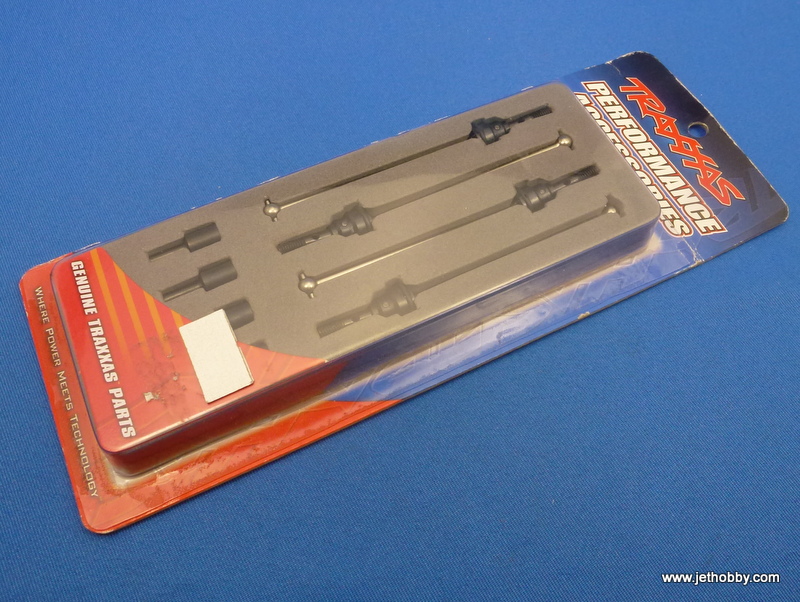 Traxxas Steel Constant Velocity Driveshafts are designed to handle the extreme horsepower and articulation that E-Revo VXL can dish out.The U-joint pins are held captive by a heavy duty o-ring so you never have to worry about losing a pin. The nickel plated steel shafts and black oxide treated accents not only look good, they are designed to exacting specifications for ultimate strength and performance. These are simply the most advanced steel CV driveshafts available for the E-Revo VXL