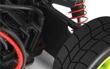 • Rally Tuned Suspension Arms: Fully adjustable suspension arms features droop screw, multiple shock mounting positions and structural reinforcement for increased durability. Mudguards are held securely in place via two button head screws while the mud guards themselves protect the shock shafts from debris in order to promote increased seal longevity.