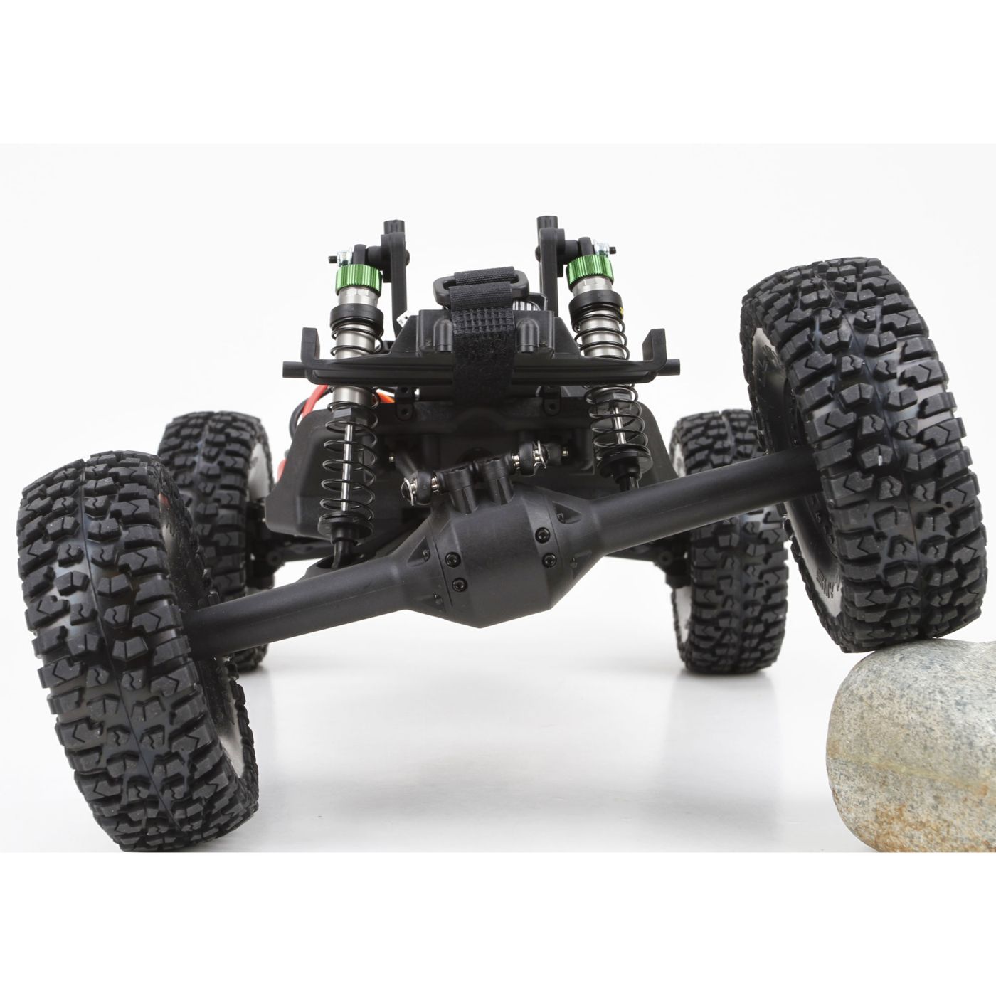 The Twin Hammers® chassis has long-travel suspension with a solid rear axle, just like many full-scale rock racers. This gives you all the footing you need when crawling through rock-filled ravines or blasting across the flats.