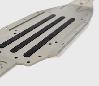 A precision machined, 7075 -T6 2.5mm aluminum chassis for outstanding durability